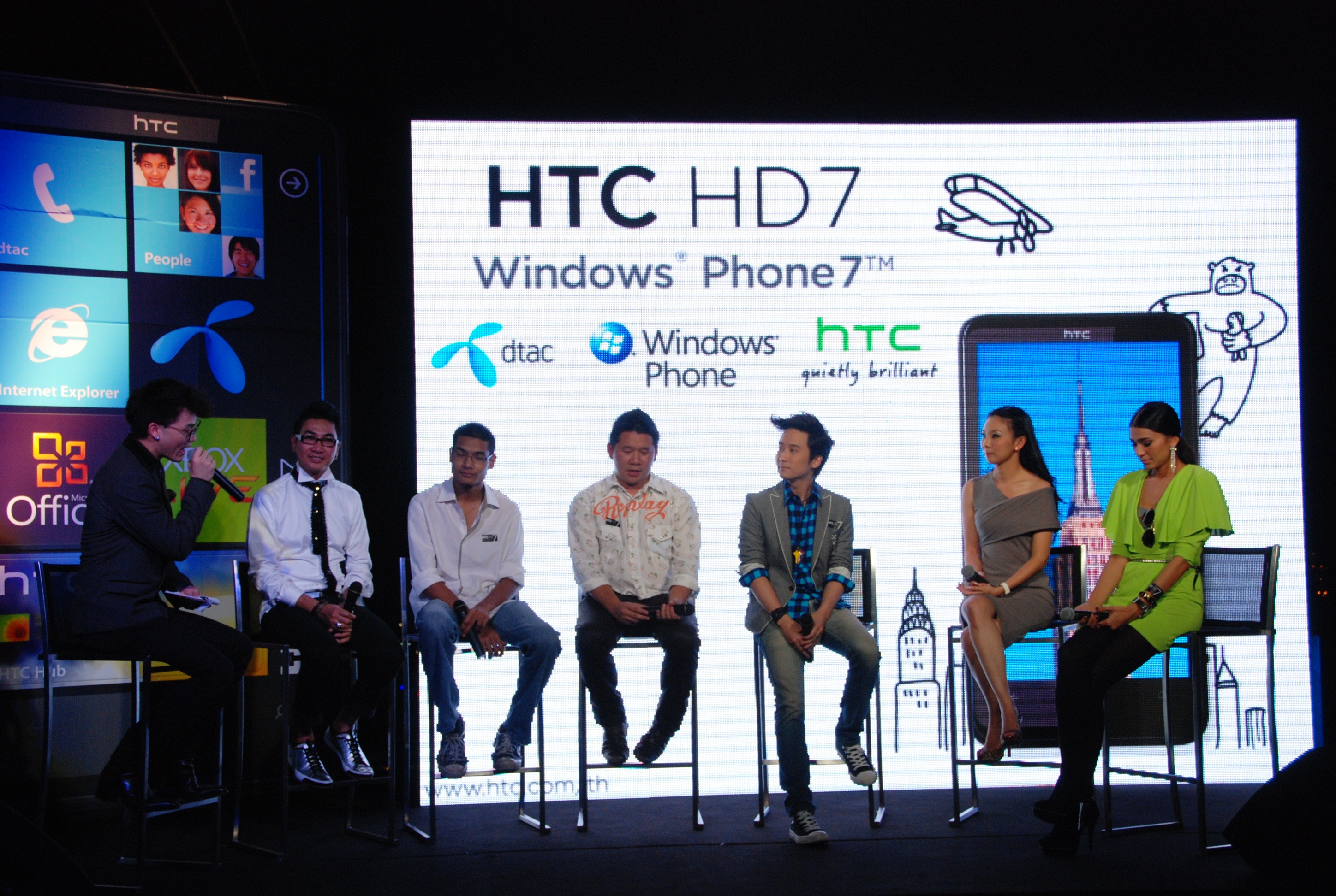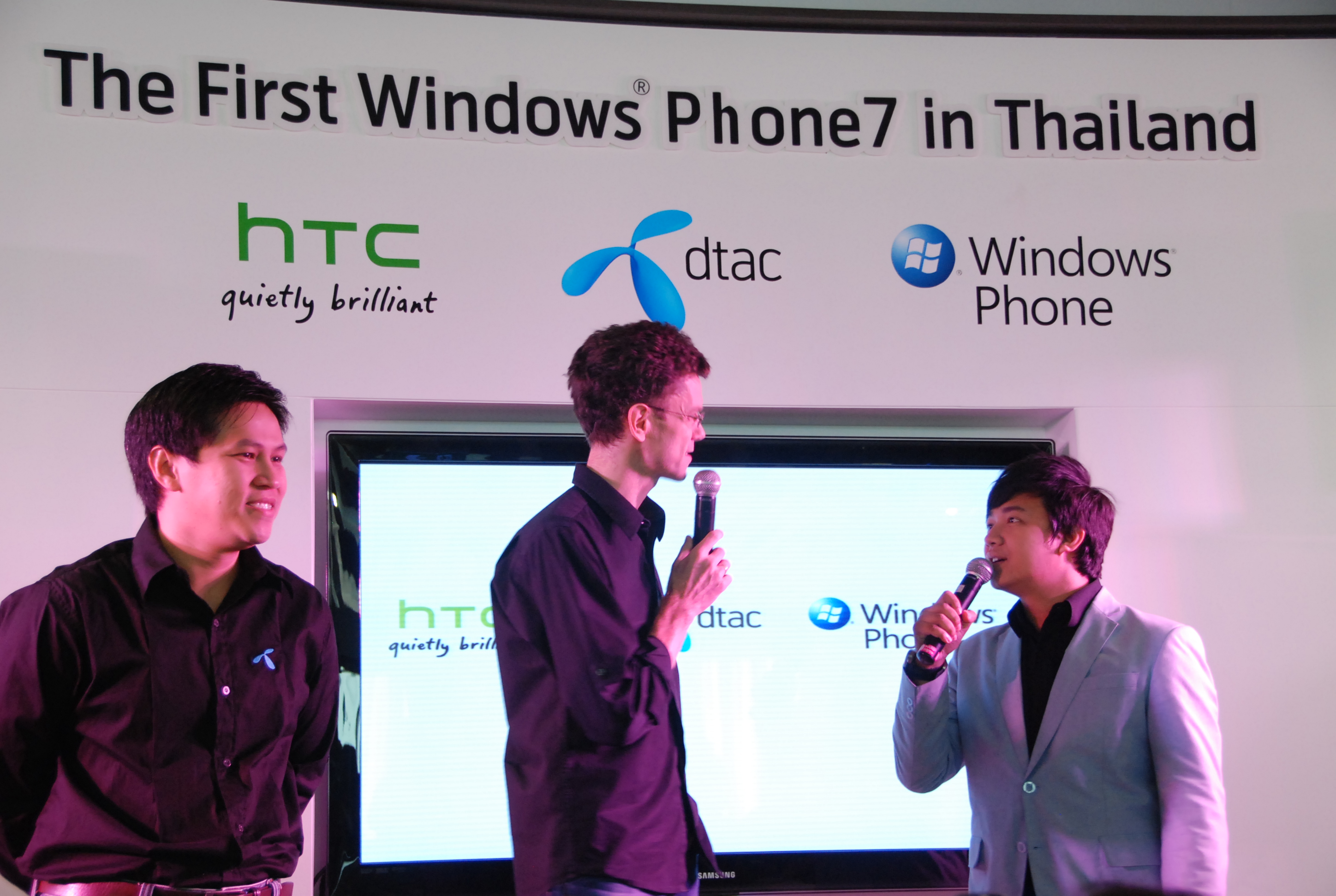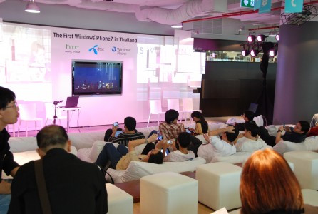 สำหรับการเปิดตัว Windows Phone 7 ครั้งแรกในประเทศไทย จัดขึ้นที่ตึก จามจุรี SQ ในวันที่ 15 ธันวาคม ที่ผ่านมา โดยใช้ชื่องานว่า HTC HD7 Blogger Day ซึ่งเป็นการรวมตัวกันของ ดีแทค เอชทีซี คอร์ปอเรชัน ผู้ออกแบบสมาร์ทโฟนระดับโลก และไมโครซอฟท์ ผู้นำด้านระบบปฏิบัติการและเทคโนโลยีซอฟต์แวร์ซึ่งเป็นพาร์ตเนอร์ระดับโลกที่มีสัมพันธ์ที่ดีต่อกันมายาวนาน พร้อมเปิดตัวสมาร์ทโฟน รุ่น HTC HD7 ซึ่งใช้ระบบปฏิบัติการวินโดวส์ โฟน 7 ใหม่ล่าสุดจากไมโครซอฟท์และผสมผสานกับดีไซน์อันโดดเด่นและนวัตกรรมล่าสุดของเอชทีซี…