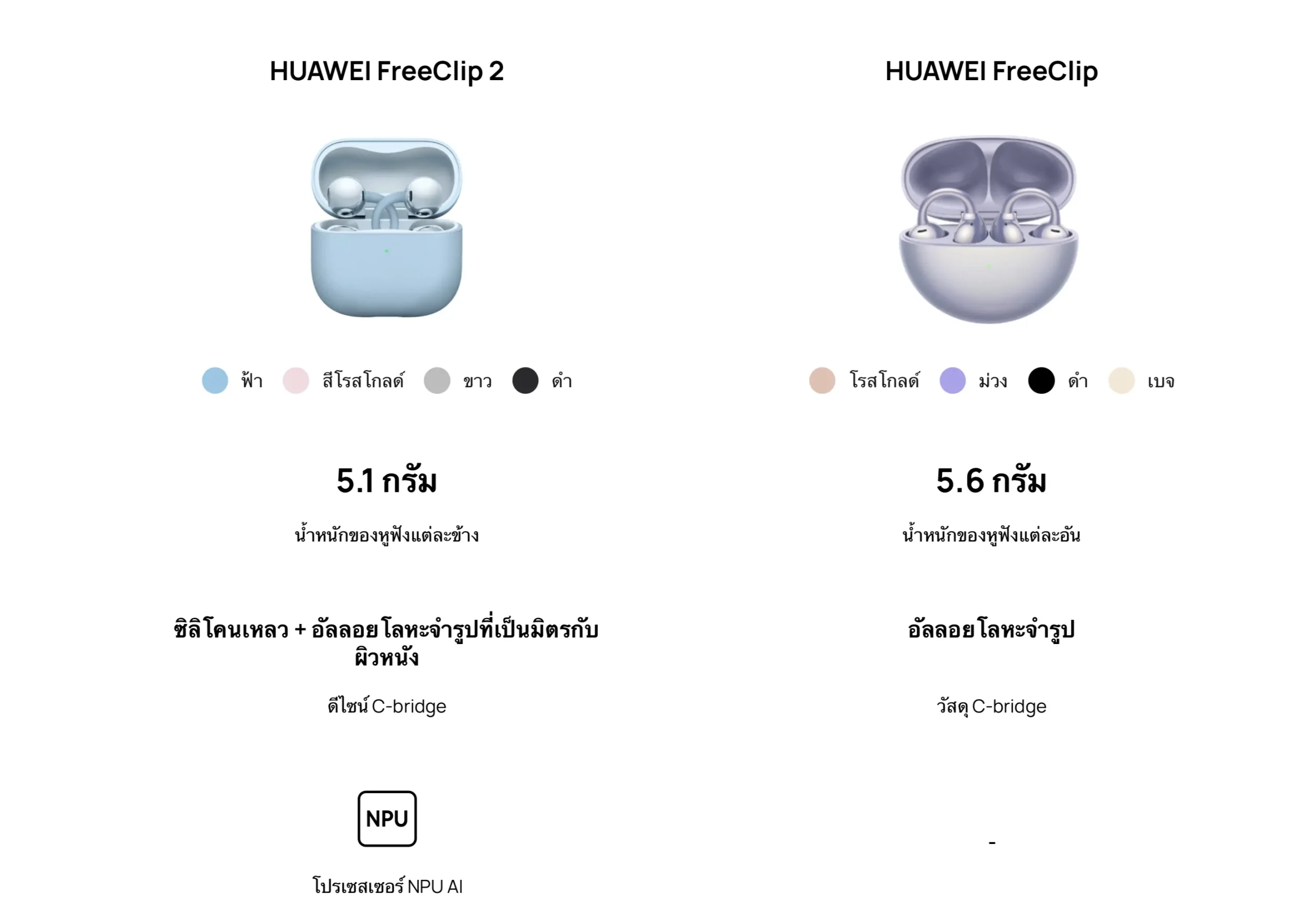 ในด้านประสิทธิภาพเชิงเทคนิค HUAWEI FreeClip 2 รุ่นนี้ขับเคลื่อนด้วยขุมพลัง NPU AI ที่ยกระดับการประมวลผลเสียง พร้อมด้วยชุดไดรเวอร์ไดอะแฟรมคู่ที่ให้กำลังเสียงสมบูรณ์แบบกว่ารุ่นก่อนหน้าถึง 100% นอกจากนี้ยังมาพร้อมแบตเตอรี่ที่ใช้งานได้ยาวนานต่อเนื่องสูงสุด 38 ชั่วโมง
