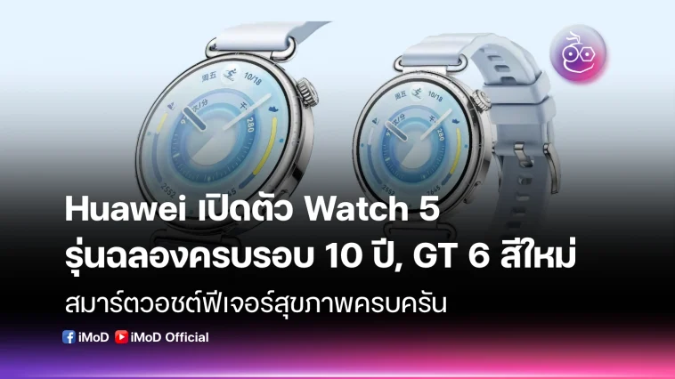 Huawei เปิดตัวสมาร์ทวอทช์รุ่นพิเศษ Watch 5 ฉลองครบรอบ 10 ปี พร้อมเพิ่มสีใหม่ให้กับ Watch GT 6 ในรุ่นตัวเรือน 41 มม.