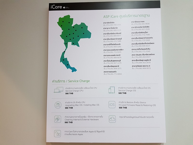โดยปกติแล้วเวลาเคลม iPhone, iPad, Mac หรือสินค้า Apple ส่วนใหญ่มักจะต้องเข้าเมืองไปแถวสยาม และเนื่องจาก Apple ไม่ได้มีสาขาในไทยจึงใช้วิธีจัดตั้งศูนย์บริการอย่าง iCare (หรือชื่ออะไรก็ตามแต่) ซึ่งเป็นร้าน Apple Authorised Service Provider ต่างจากร้าน iStudio ที่เป็นตัวแทนจำหน่ายเพียงอย่างเดียว