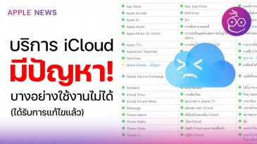 เมื่อคืนที่ผ่านมาระบบหลายระบบของ Apple เช่น iCloud, Mail, Find My iPhone ฯลฯ มีปัญหาและหยุดทำงานชั่วคราว แต่ขณะนี้ได้รับการแก้ไขปัญหาและกลับมาใช้งานได้เป็นปกติแล้ว