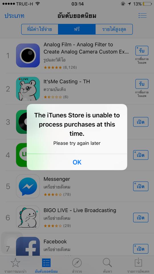 ปัญหาเป็นที่ฝั่งเซิร์ฟเวอร์ของ Apple นะครับ ไม่ได้เสียที่ฝั่งผู้ใช้แต่อย่างใดเดี๋ยวสักพักคงใช้งานได้ปกติครับ