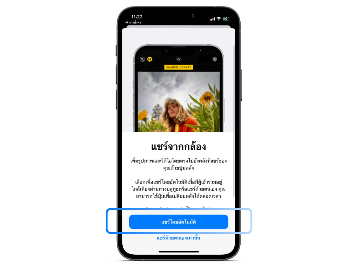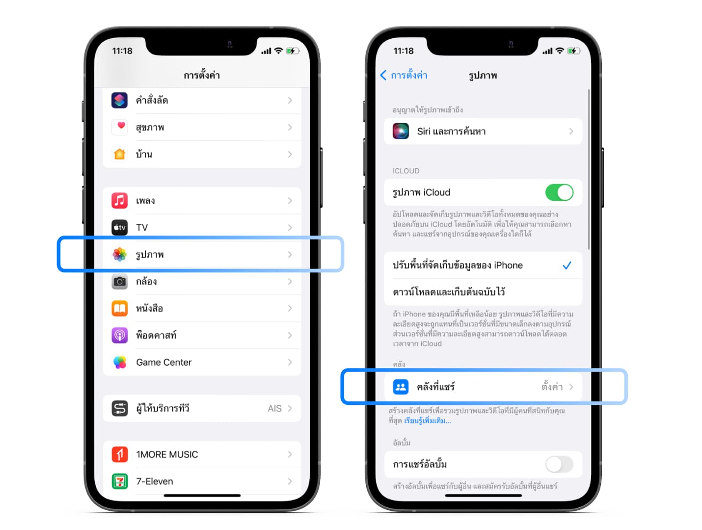 การตั้งค่า > รูปภาพ > คลังที่แชร์