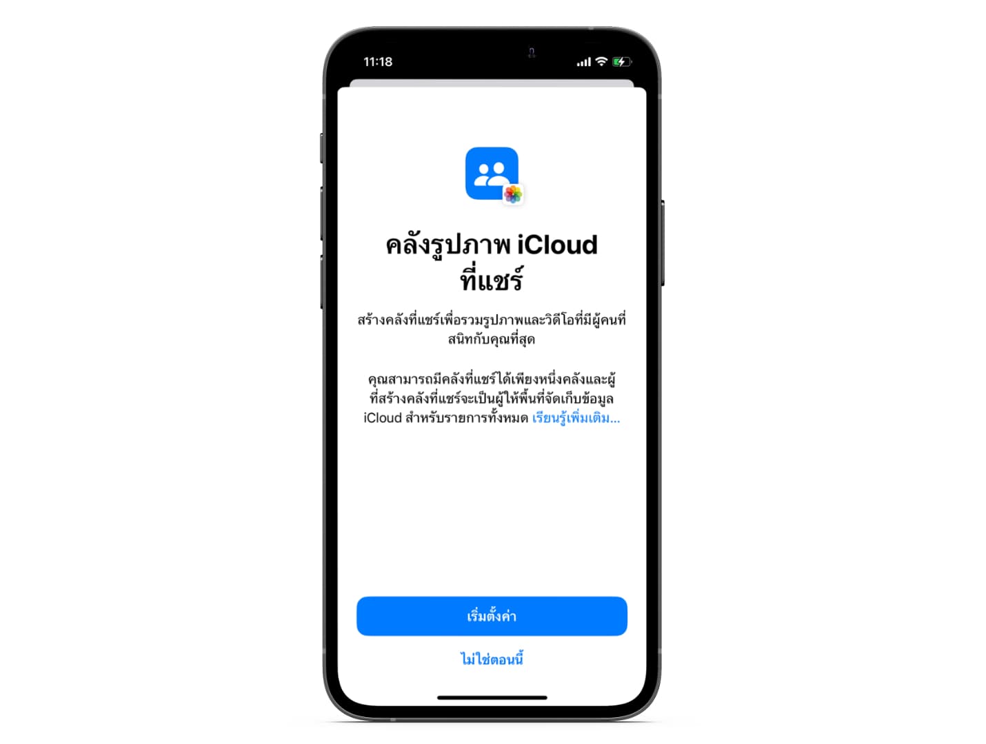 สำหรับการเปิดใช้งานคลังรูปภาพ iCloud ที่แชร์ ครั้งแรก ให้เข้าไปที่