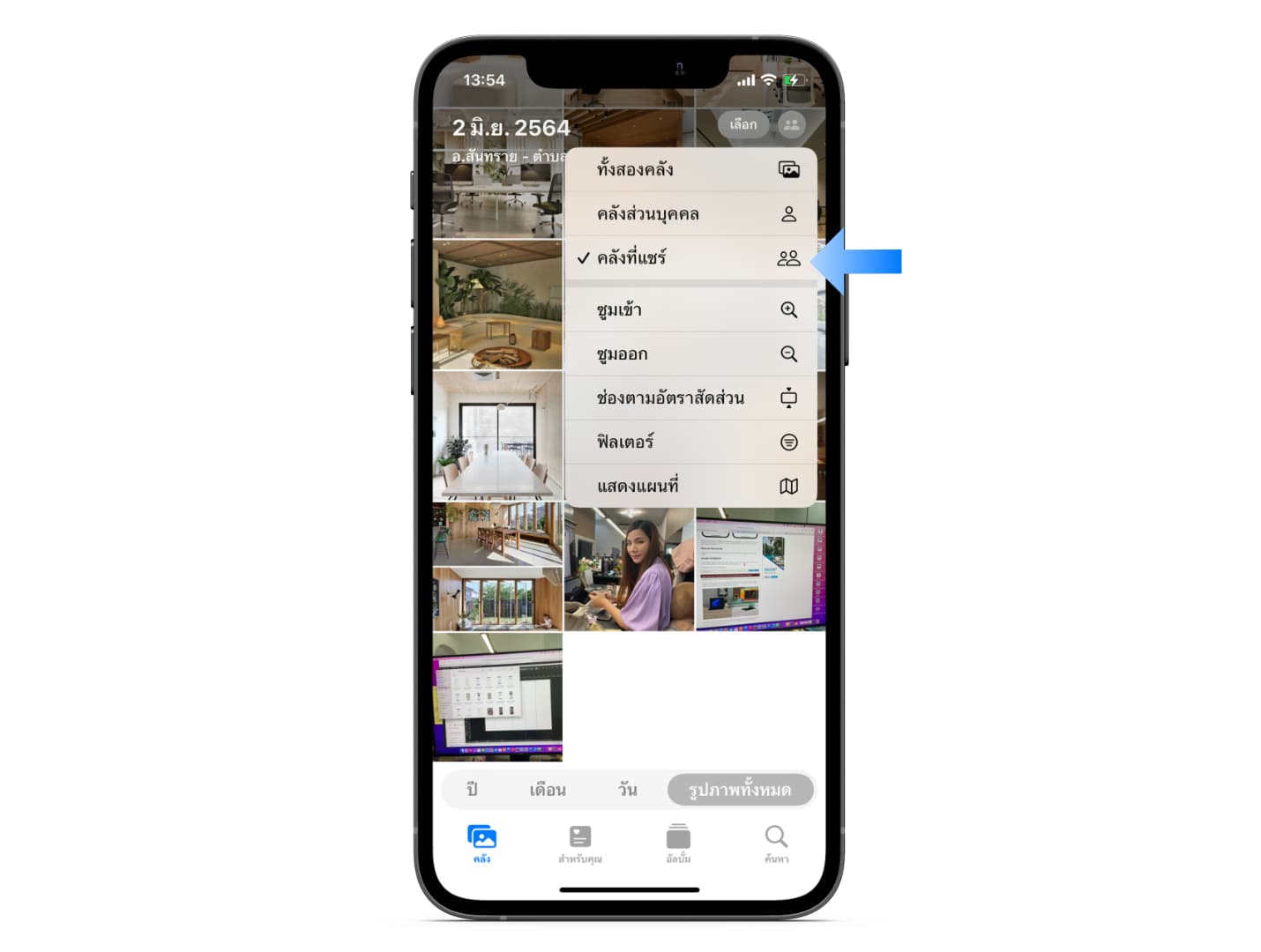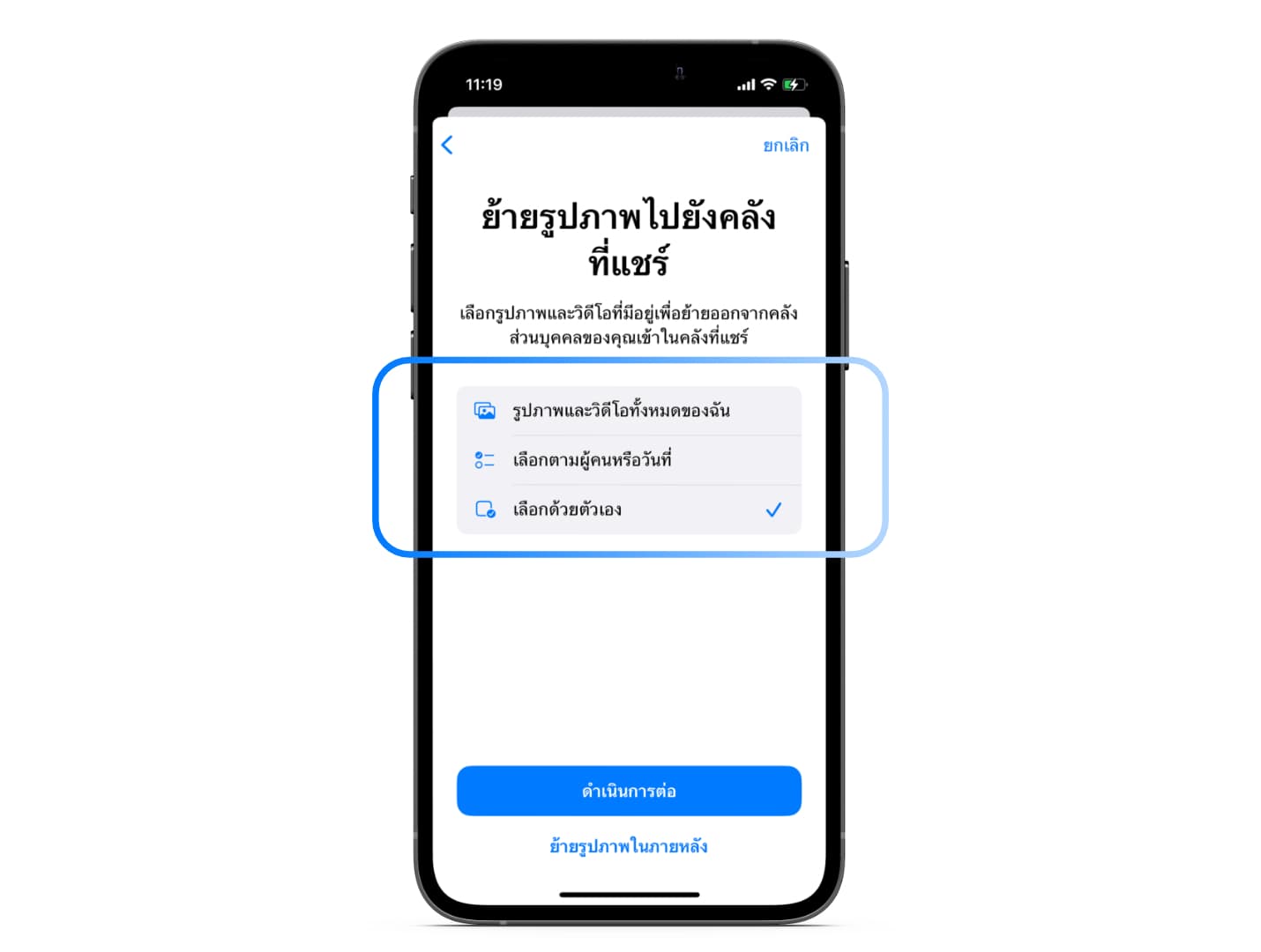 - เลือกรูปภาพจากในคลังส่วนตัวไปไว้ในคลังรูปภาพ iCloud ที่แชร์ได้
