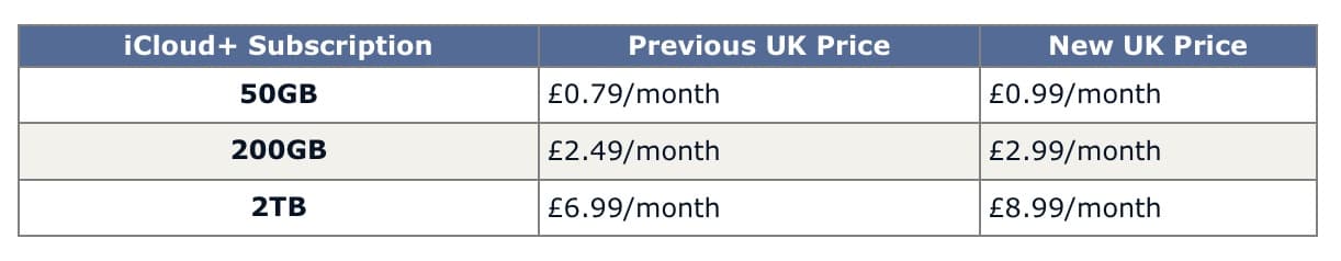 ราคา iCloud+ ในอังกฤษถูกปรับขึ้นจากเดิมเป็นดังนี้