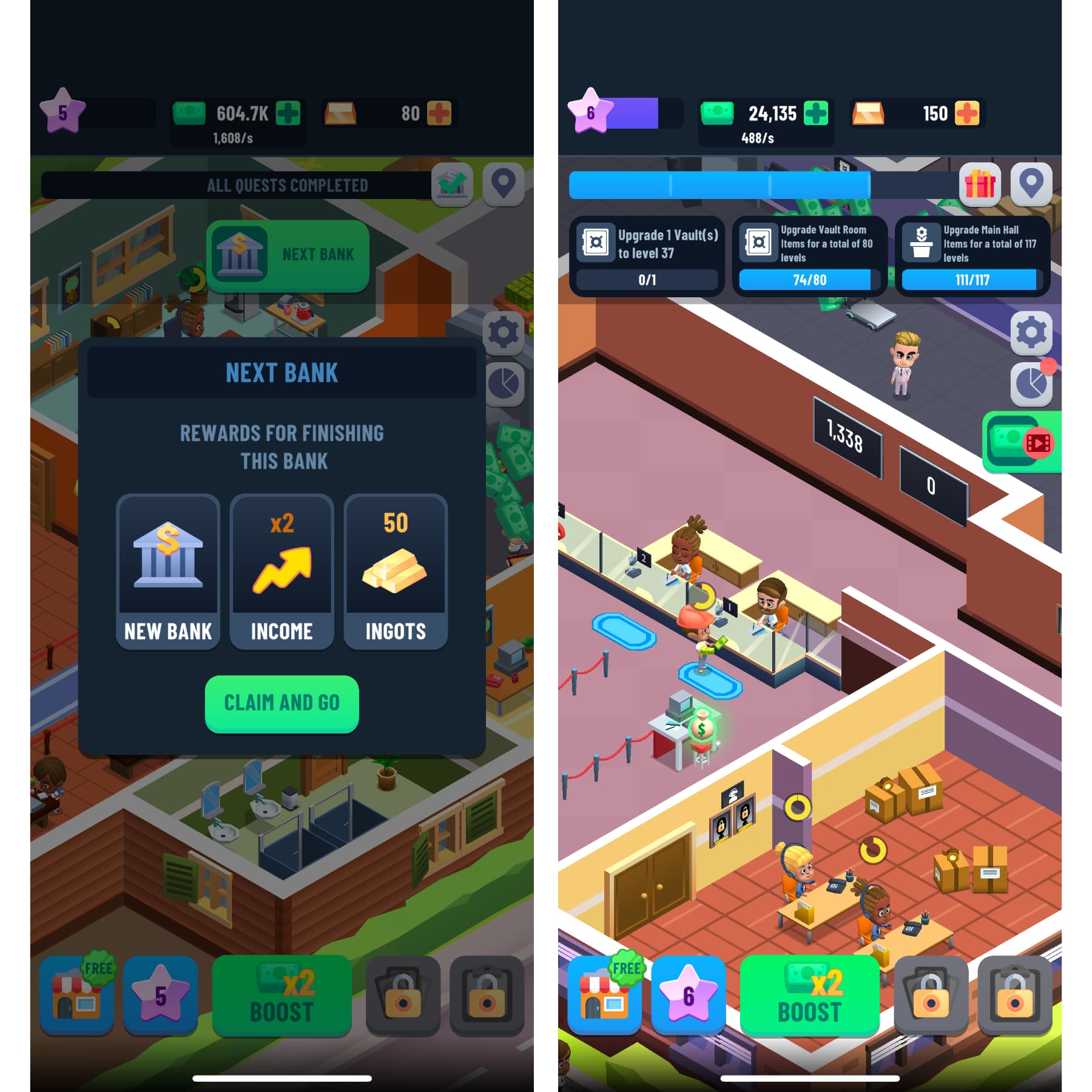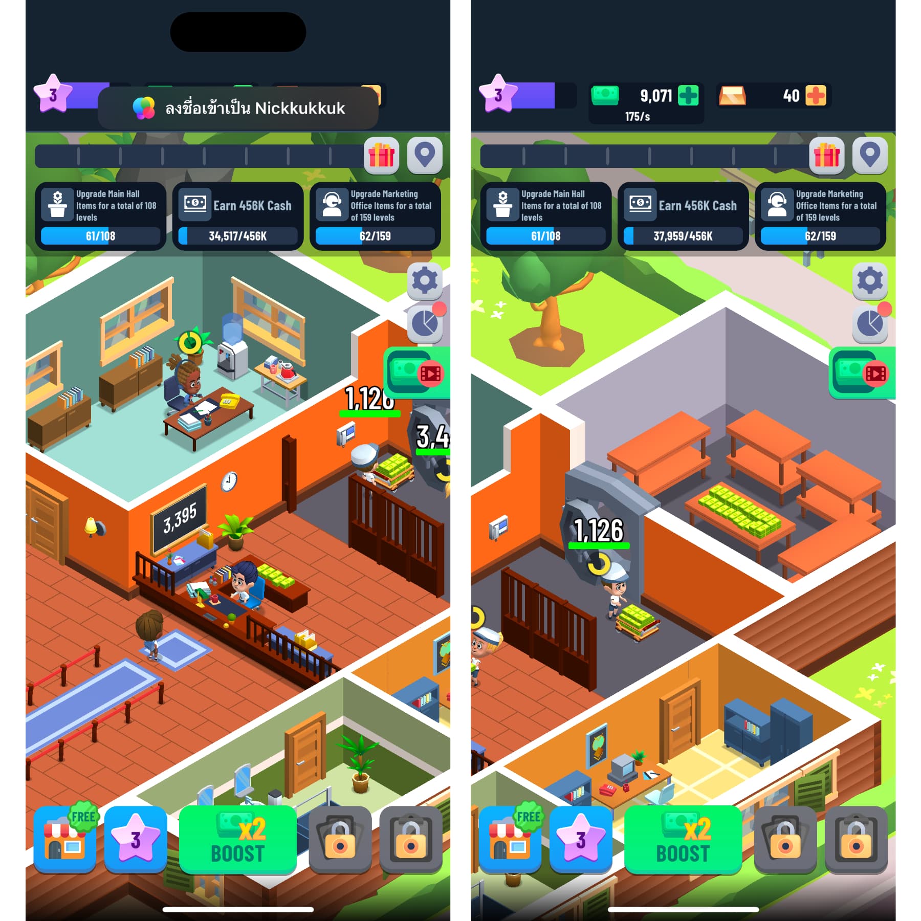 เมื่อเราอัปเกรดธนาคารที่แรกจนเต็มแล้วก็จะได้ย้ายไปธนาคารใหม่ที่ใหญ่กว่า มีอะไรให้ทำเยอะขึ้น แถมได้รายได้เพิ่มขึ้นด้วย