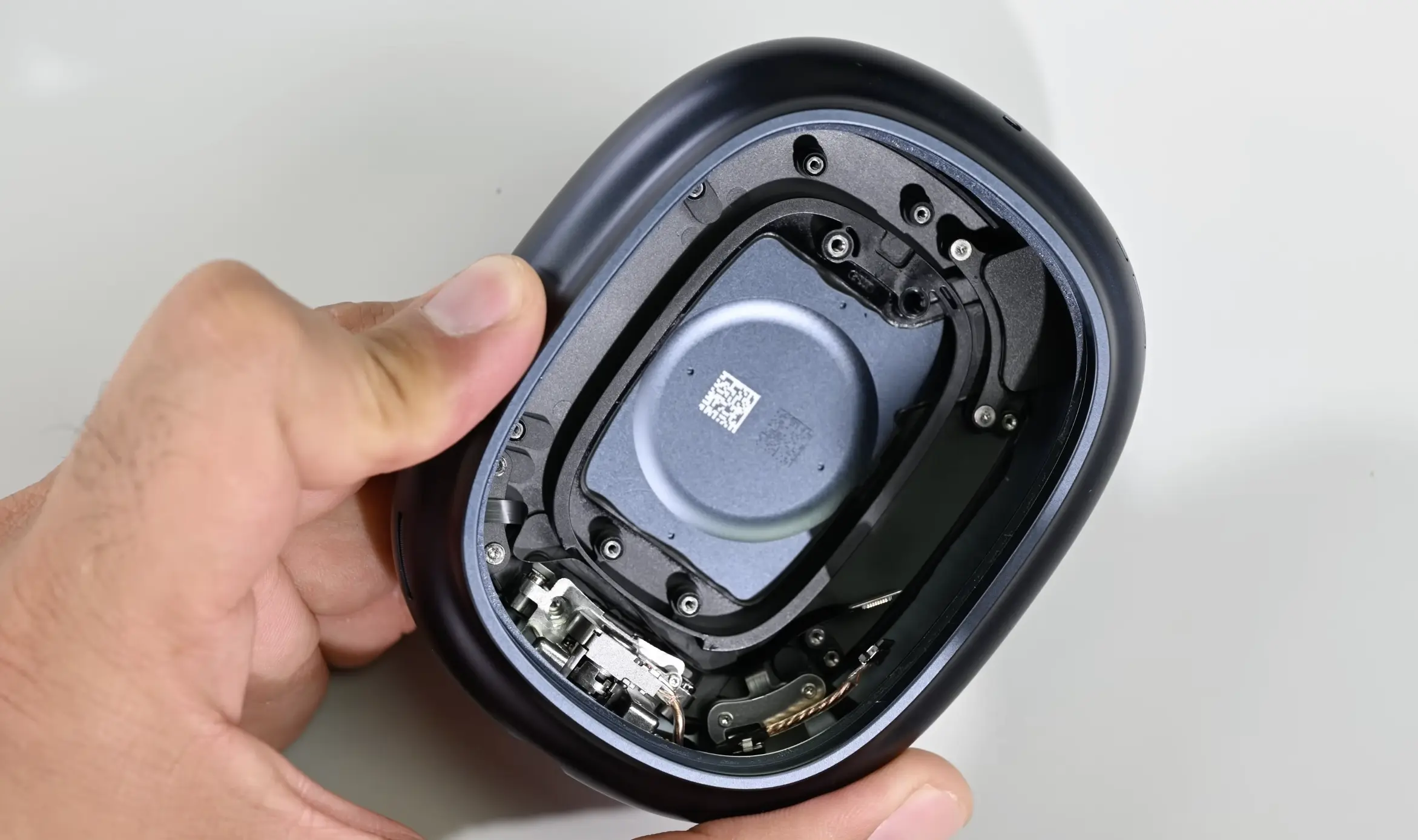 จากการเปรียบเทียบชิ้นส่วนภายในพบว่า โครงสร้าง และการจัดวางอุปกรณ์แทบจะเหมือนกับ AirPods Max รุ่นที่ใช้พอร์ต USB-C ก่อนหน้า โดยความเปลี่ยนแปลงหลักมีเพียงการอัปเกรดเป็นชิป H2 ภายในแต่ละข้างเท่านั้น