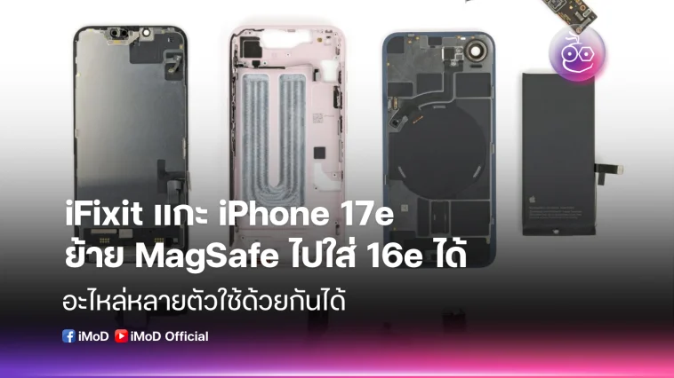 iFixit แกะเครื่อง iPhone 17e พบว่า สามารถสลับแผง MagSafe ไปใช้กับ iPhone 16e ได้ ช่วยอัปเกรดฟีเจอร์และเพิ่มทางเลือกในการซ่อมแซม
