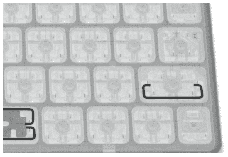 ภาพ X-Ray Magic Keyboard สำหรับ iPad Pro เห็นชิ้นส่วนที่คีย์บอร์ดชัดเจนว่าใช้คีย์บอร์ดแบบกลไกกรรไกร โดย iFixit เผยว่าเป็นกลไกแบบเรียบง่าย แต่ก็ถือว่าเป็นจุดเปลี่ยนครั้งใหญ่ของ Smart Keyboard