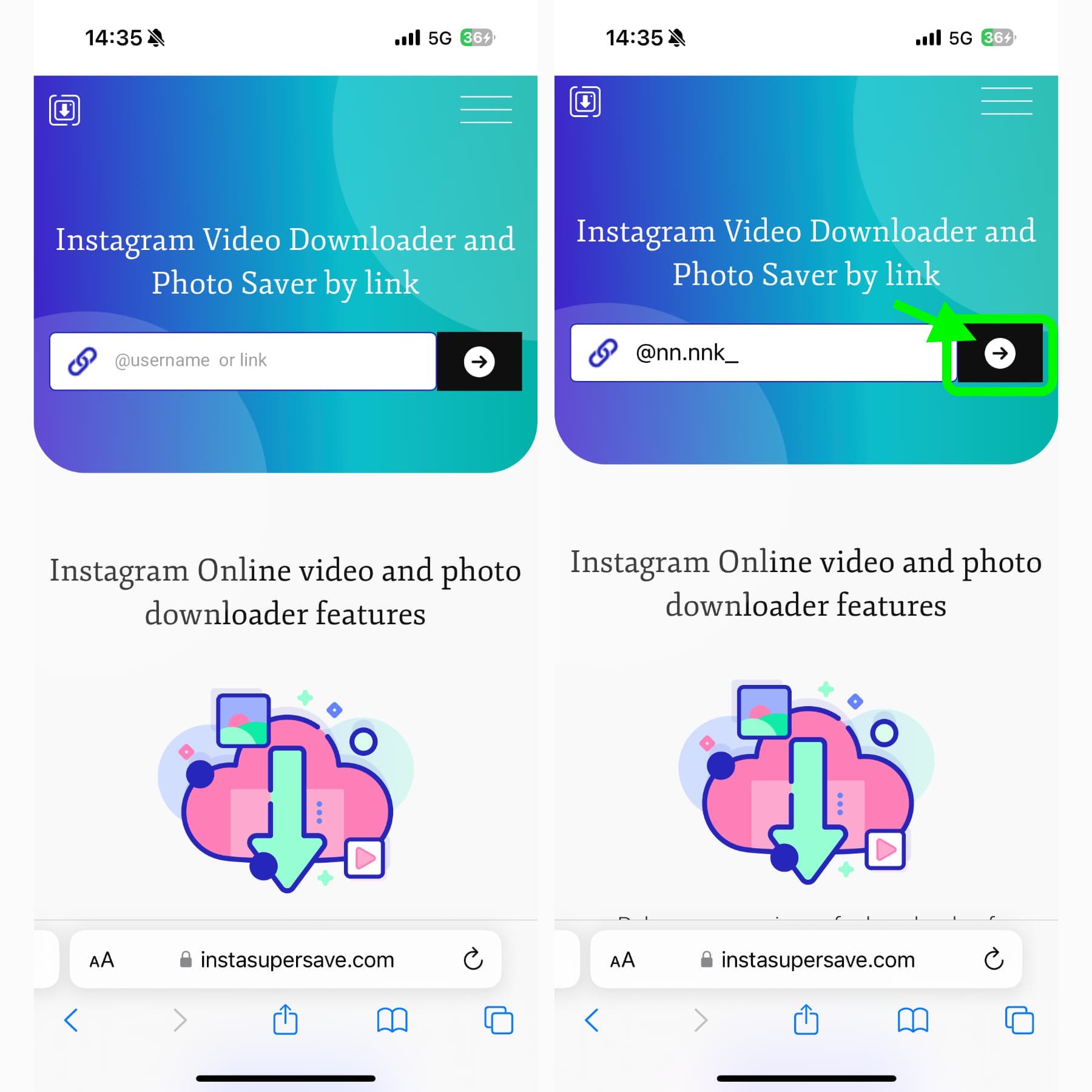 พอเข้ามาที่หน้าเว็บให้ใส่ชื่อ username หรือลิงก์บัญชี Instagram ที่ต้องการได้เลย เมื่อใส่แล้วใก้แตะที่เครื่องหมาย ➡️ เพื่อเข้าไปส่อง (ใช้ได้เฉพาะบัญชีที่เปิดเป็นสาธารณะเท่านั้น)