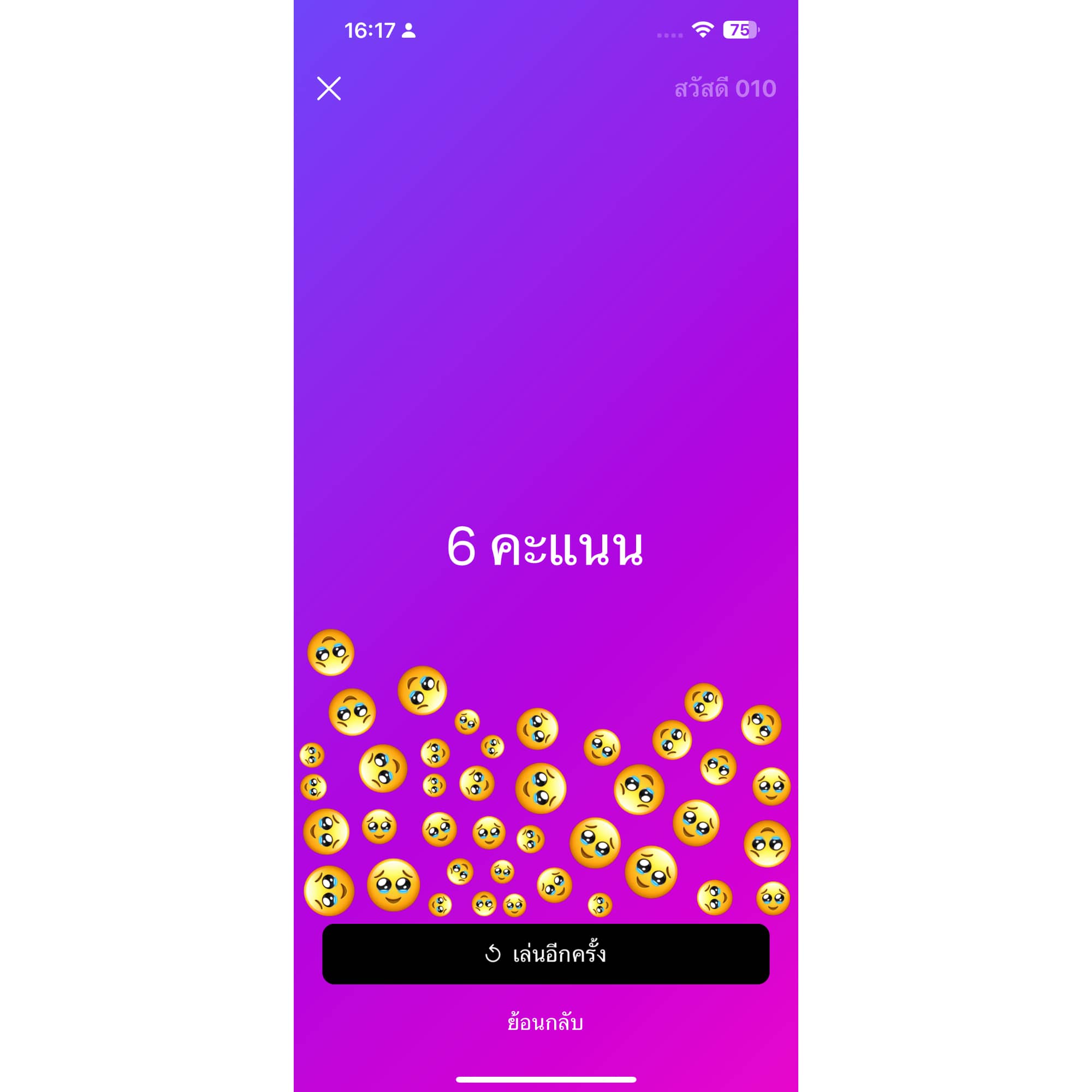 พอเราเล่นเสร็จก็จะมีคะแนนเด้งขึ้นมา พร้อมน้องอิโมจิสุดน่ารัก🥹