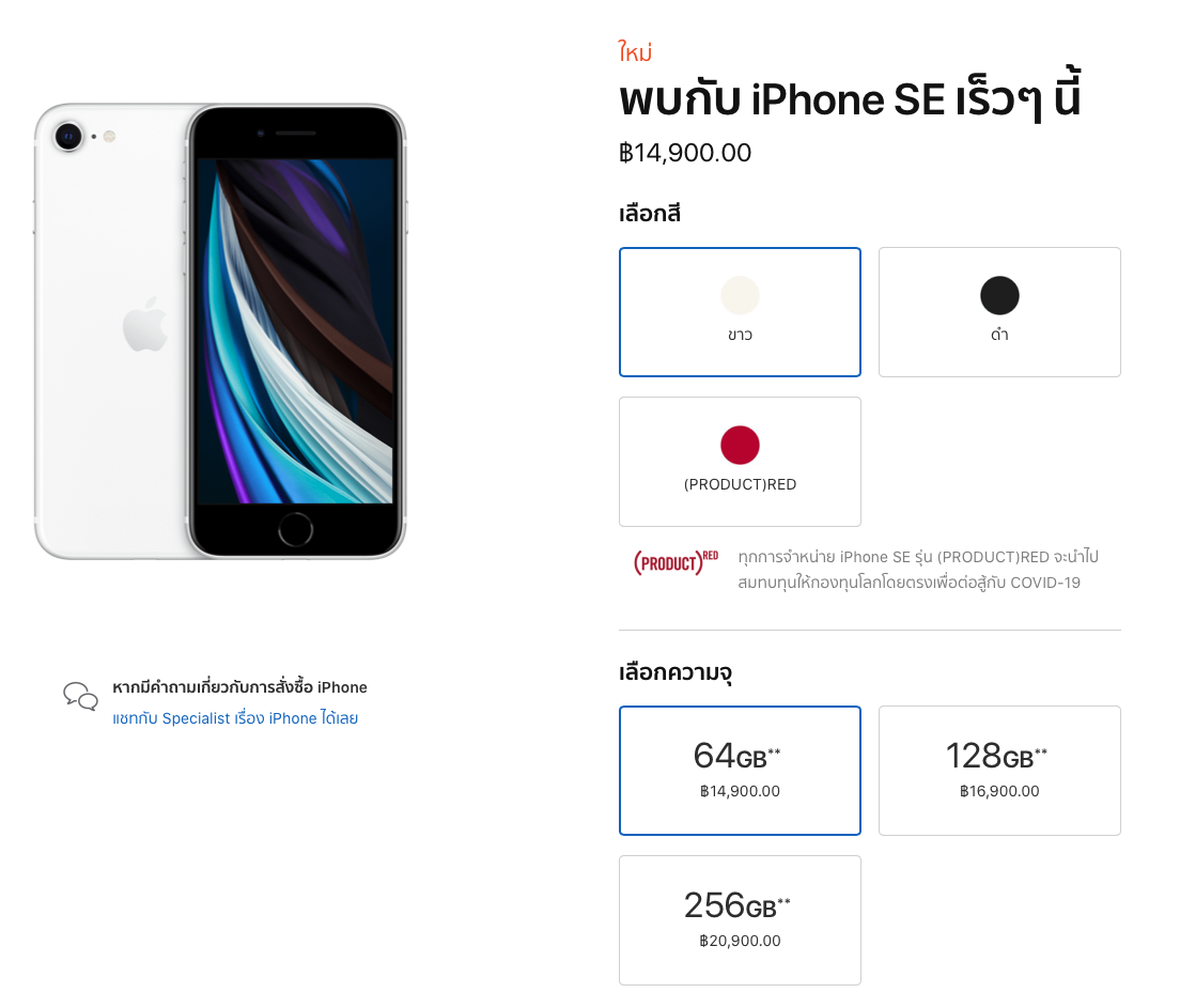 Apple ยังไม่เปิดขาย iPhone SE ในไทย ณ วันที่เผยแพร่ข้อมูล