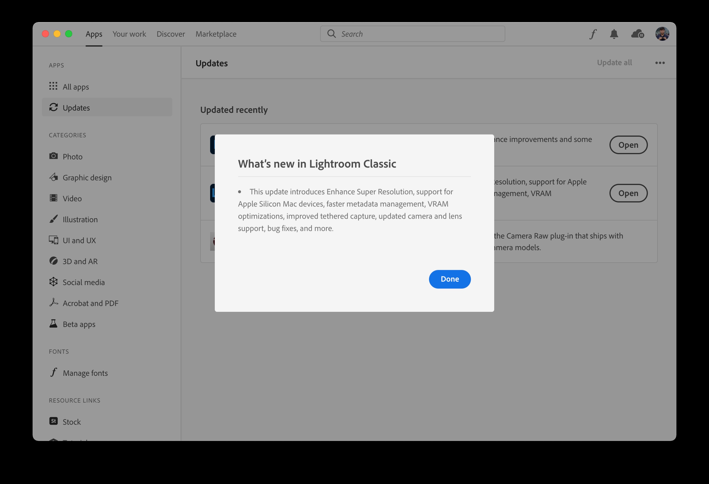 ส่วนการอัปเดตเวอร์ชันใหม่นั้น Adobe ได้เริ่มทะยอยปล่อยอัปเดตแอปต่าง ๆ ให้ผู้ใช้ Mac ได้อัปเดตแล้ว