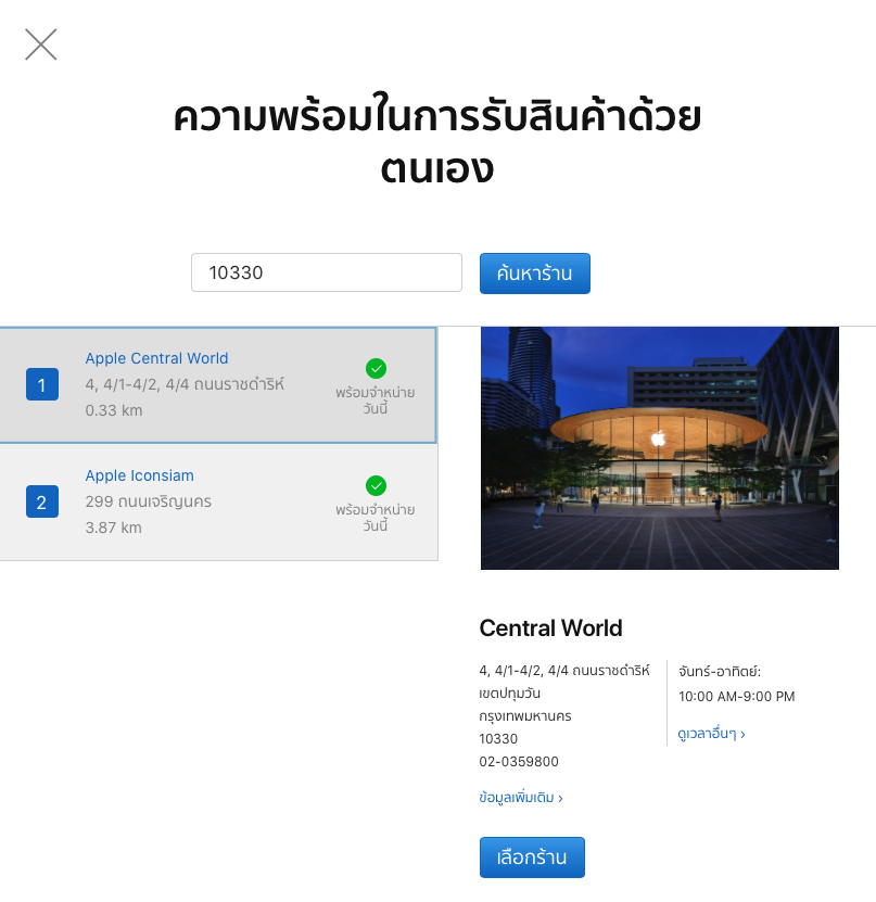 เมื่อเข้าไปดูที่ Apple Store ออนไลน์ไทย พบว่า ผู้ซื้อสามารถกดซื้อ iMac รุ่น 27 นิ้ว 2020 แล้วไปรับเครื่องได้แล้วที่ Apple Central World, Apple Iconsiam ได้แล้ว