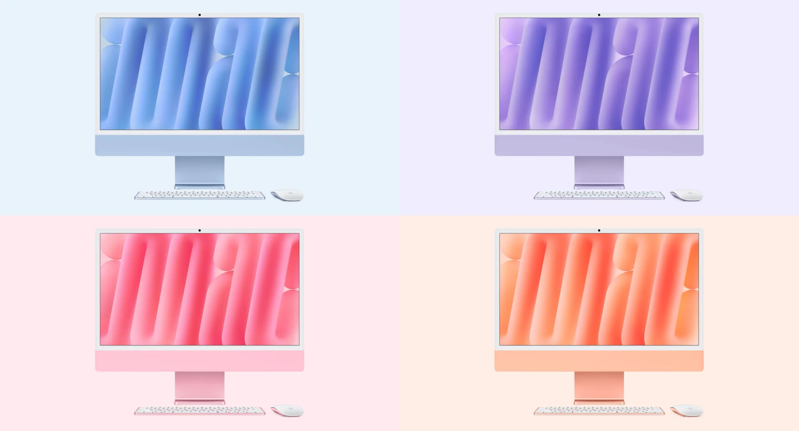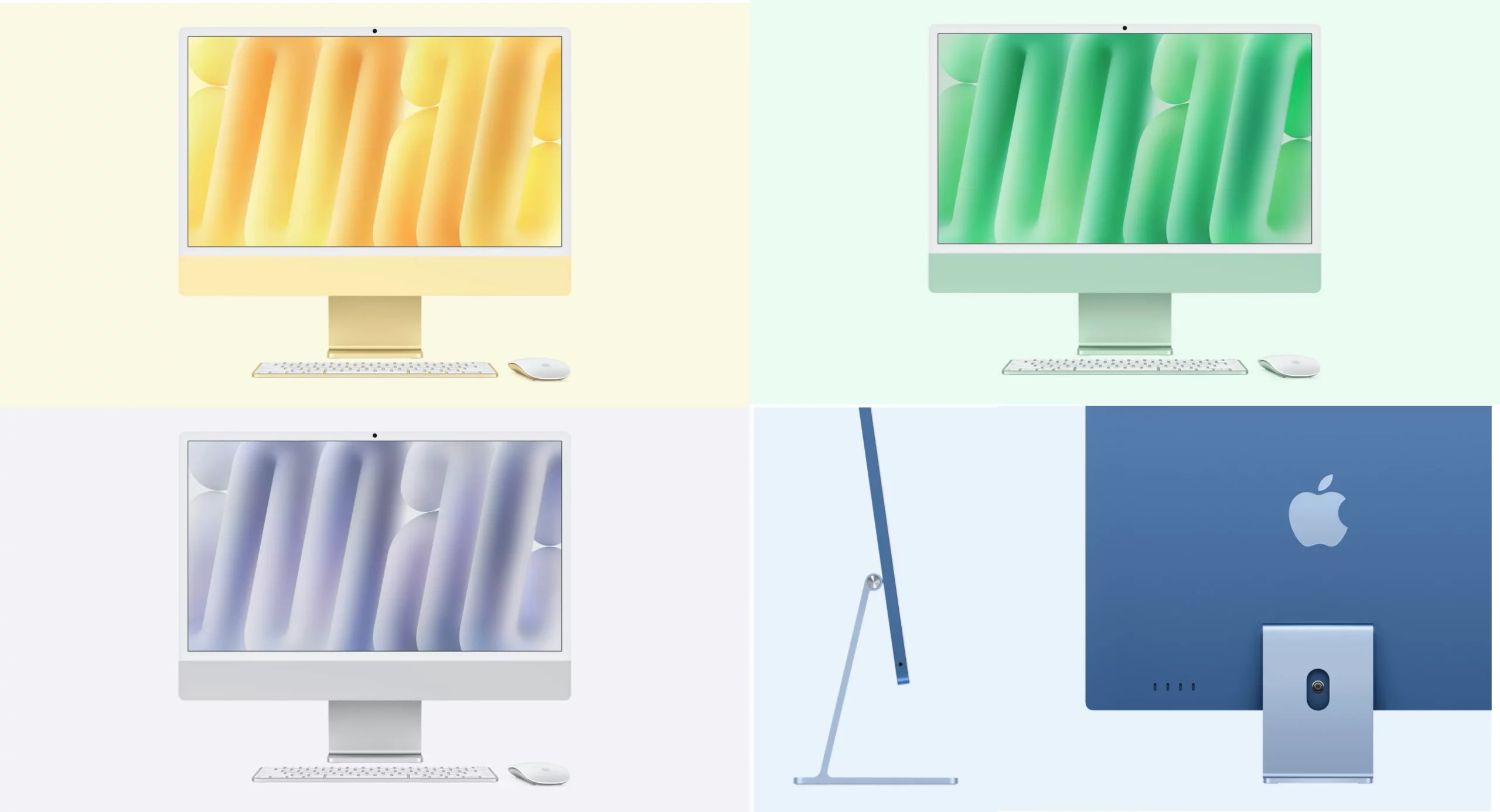iMac ชิป M4 มีให้เลือก 7 สี ได้แก่ สีฟ้า สีม่วง สีชมพู สีส้ม สีเหลือง สีเขียว และสีเงิน