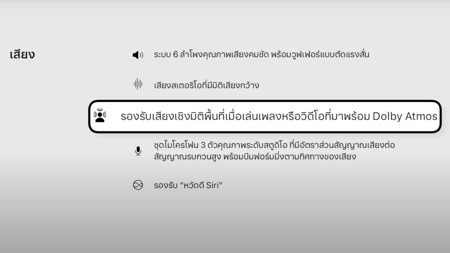 - รองรับการเล่นเพลงเเละวิดีโอ Dolby Atmos