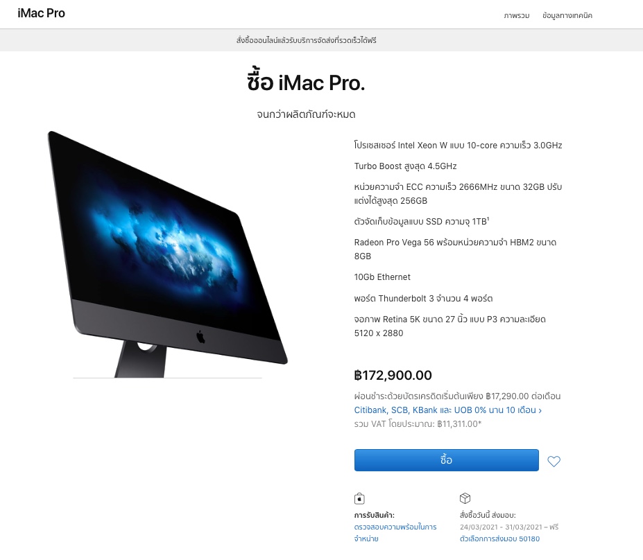 iMac Pro ถูกเปิดตัวครั้งแรกตอนปี 2017 และถูกอัปเกรดสเปคอีกครั้งช่วงเดือน ส.ค. ปี 2020 และช่วงต้นเดือน มี.ค., Apple ก็ได้ประกาศวางจำหน่ายจนกว่าผลิตภัณฑ์จะหมด