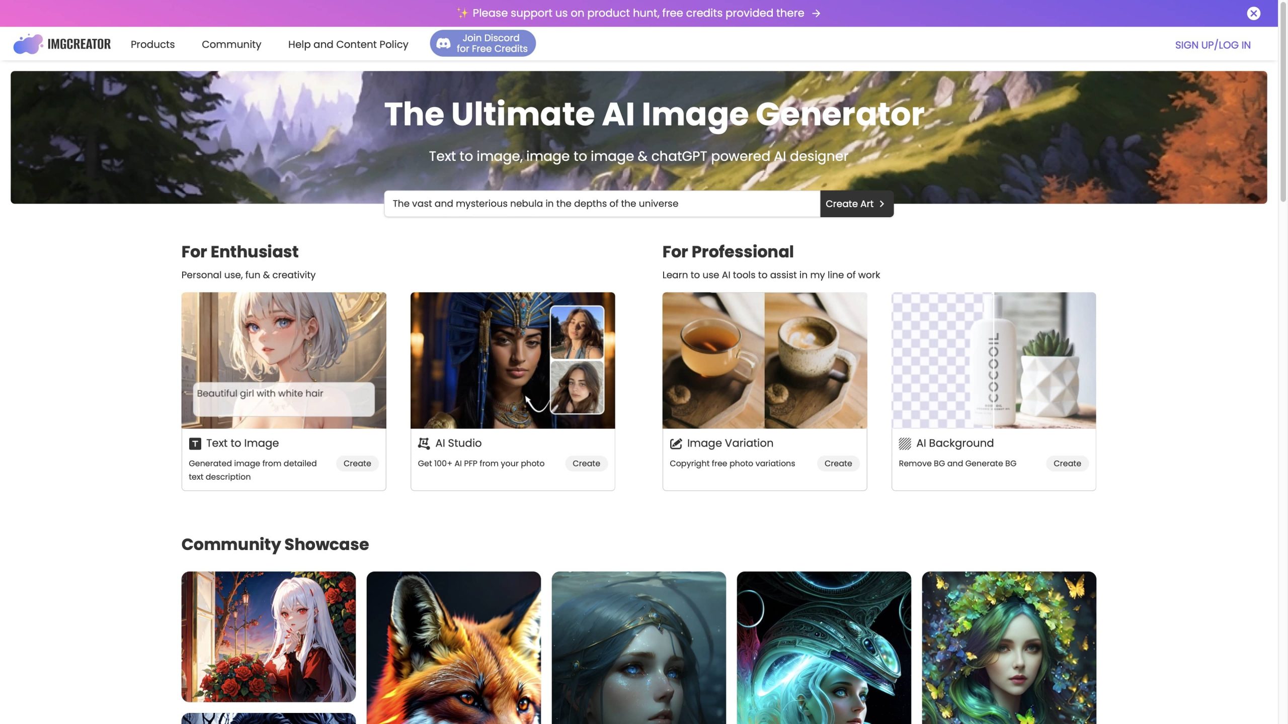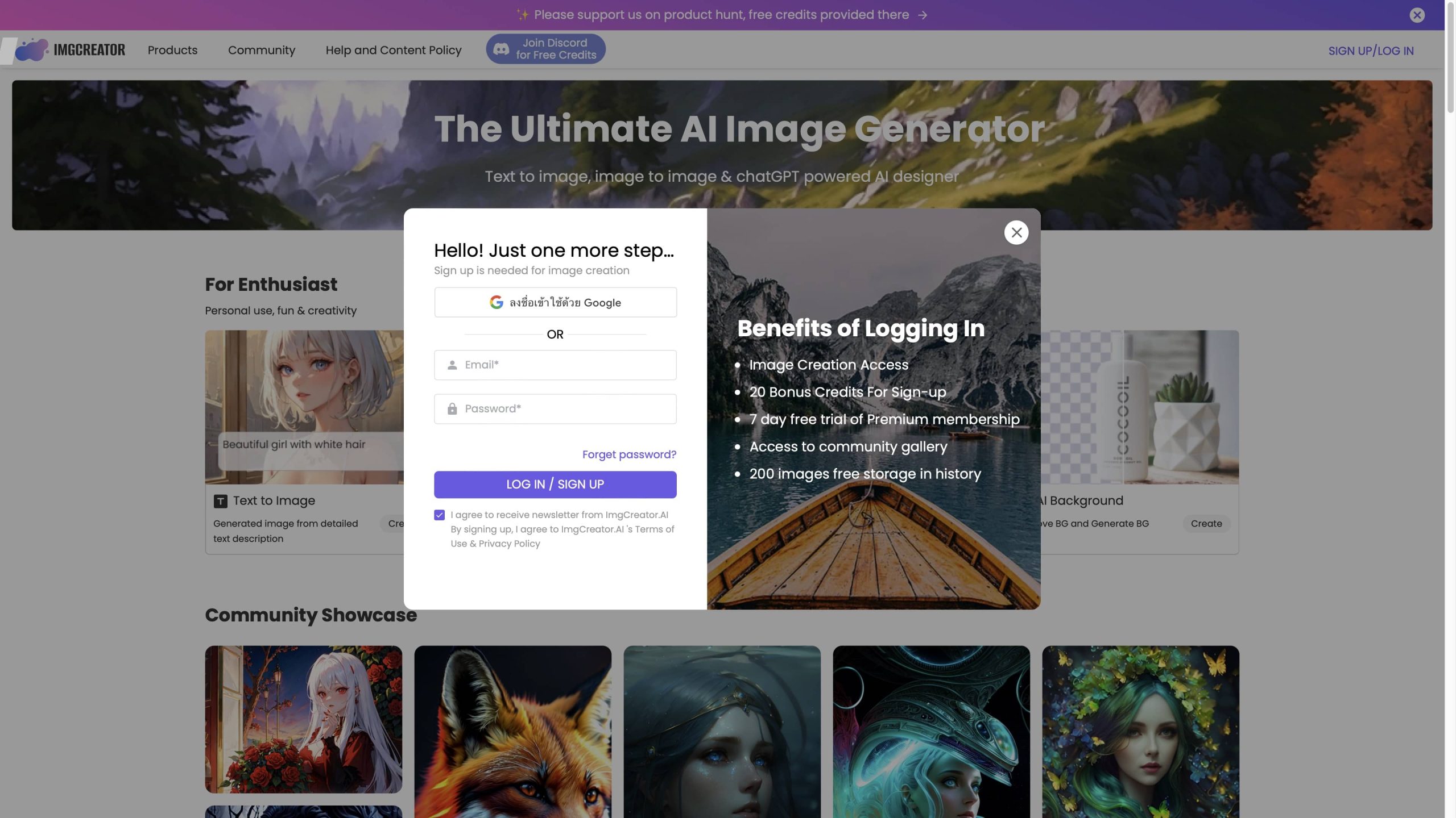 มาที่หน้าเว็บ Imgcreator กด “Create Art” เพื่อเริ่มสร้างภาพ AI กันได้เลย