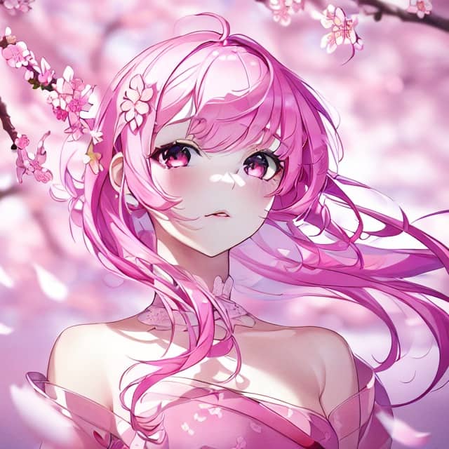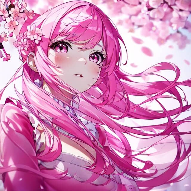 beautiful princess with pink hair and cherry blossoms