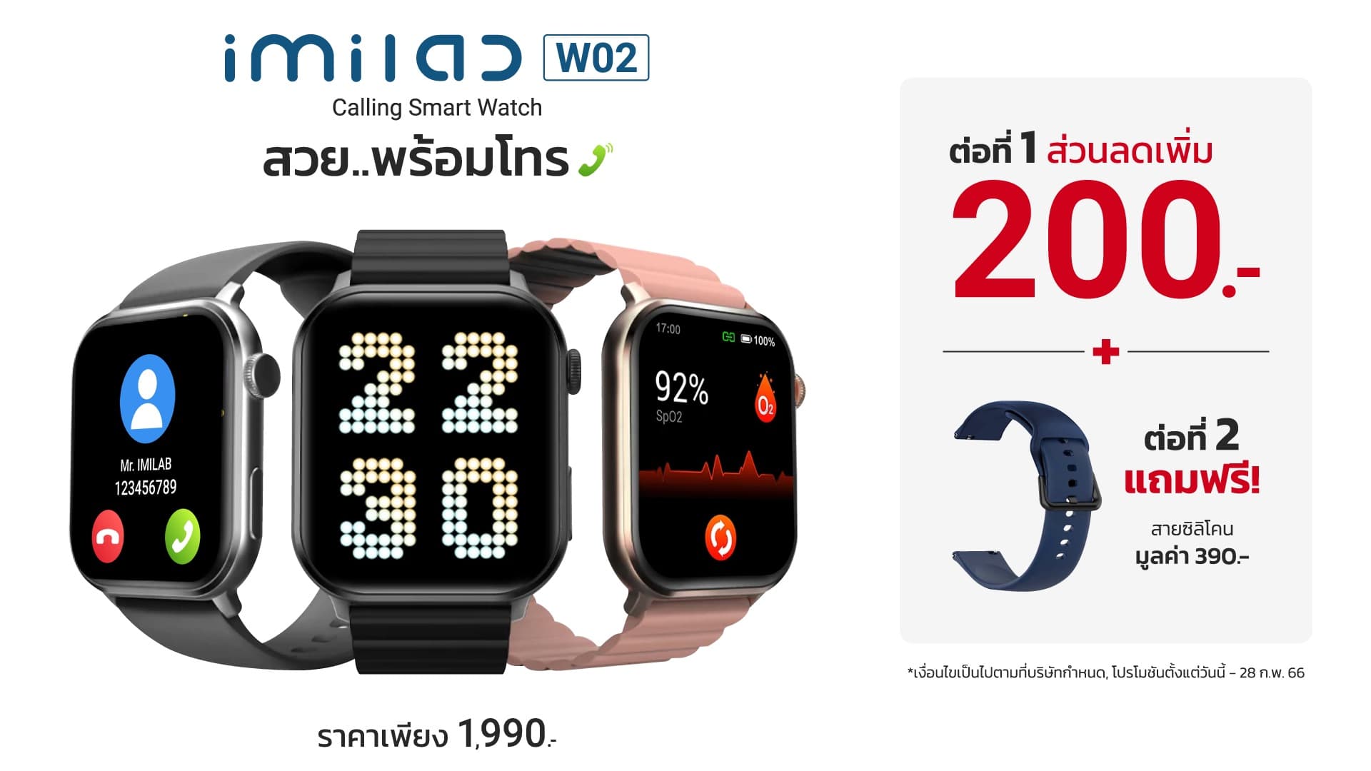 🎉 โปรโมชั่นพิเศษ เปิดตัว IMILAB W02 สมาร์ทวอทช์ “สวย..พร้อมโทร” ราคา 1,990.