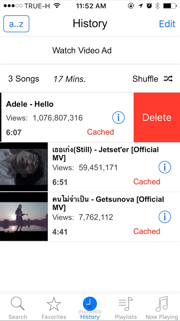 การใช้งานไม่ยุ่งยากเพียงค้นหาเพลงที่ต้องการแล้วเปิดฟังจากนั้นเพลงจะถูก Cached ไว้ที่ iPhone (ดูได้ที่แถบ History)
