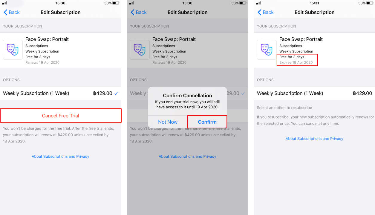 เพียงแค่นี้ ระบบก็จะทำการยกเลิกการต่ออายุอัตโนมัติให้กับคุณทันที แถมยังมีข้อดีอีกด้วยนะ เพราะคุณยังสามารถใช้งานแอปนั้นแบบพรีเมียมได้ฟรี จนครบกำหนดช่วงระยะเวลาทดลองใช้อีกด้วย โดยที่คุณไม่ต้องกังวลว่าจะถูกหักเงินอีกต่อไป