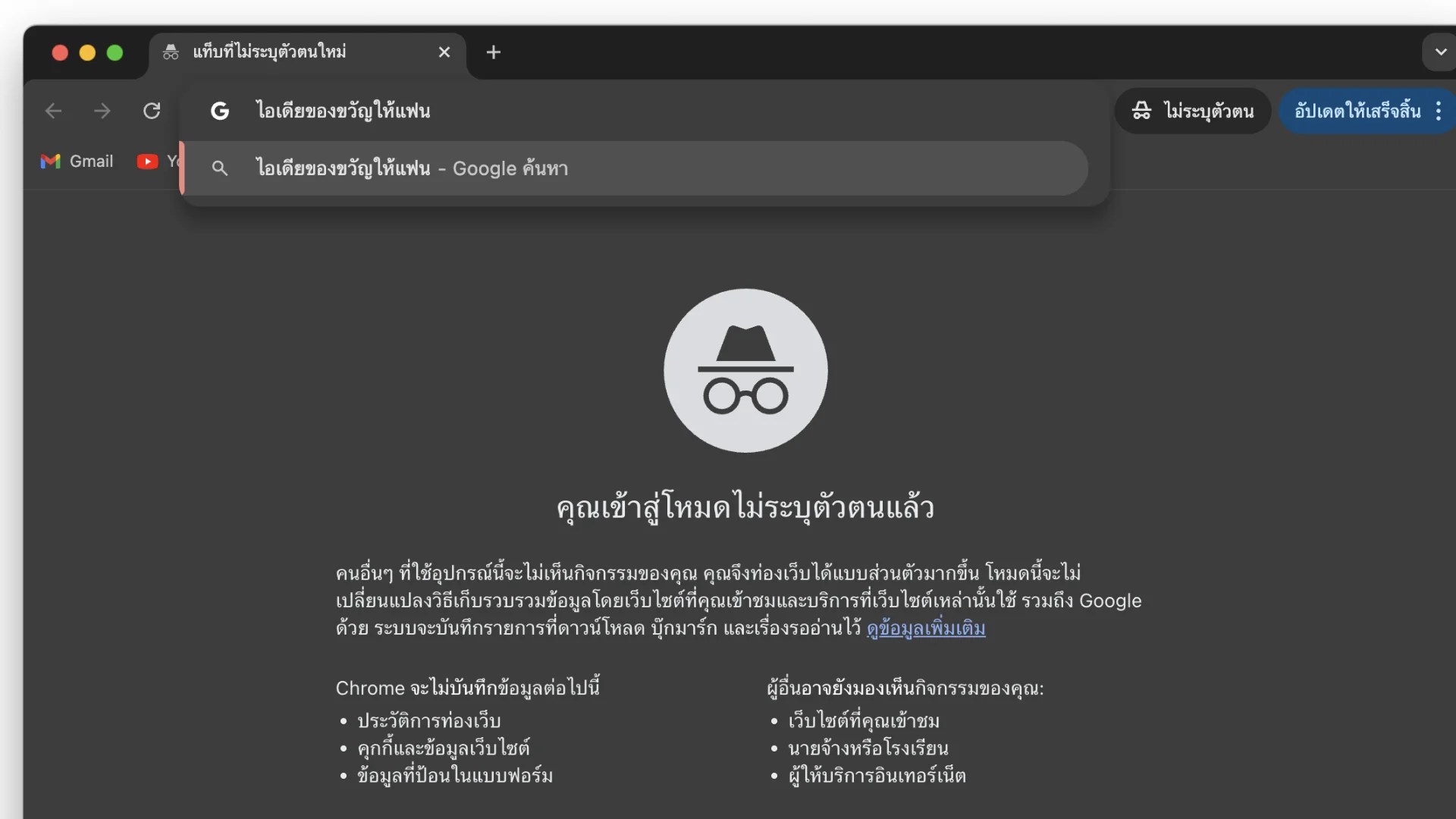 หากคุณอยู่บ้านเดียวกัน และใช้อินเทอร์เน็ตเครือข่ายเดียวกัน และคุณต้องการซื้อของขวัญโดยไม่ให้คนที่คุณต้องการจะเซอร์ไพรส์รู้ คุณสามารถใช้โหมดไม่ระบุตัวตนเพื่อค้นหาของขวัญได้อย่างปลอดภัย ไม่โป๊ะแตกแน่นอน!