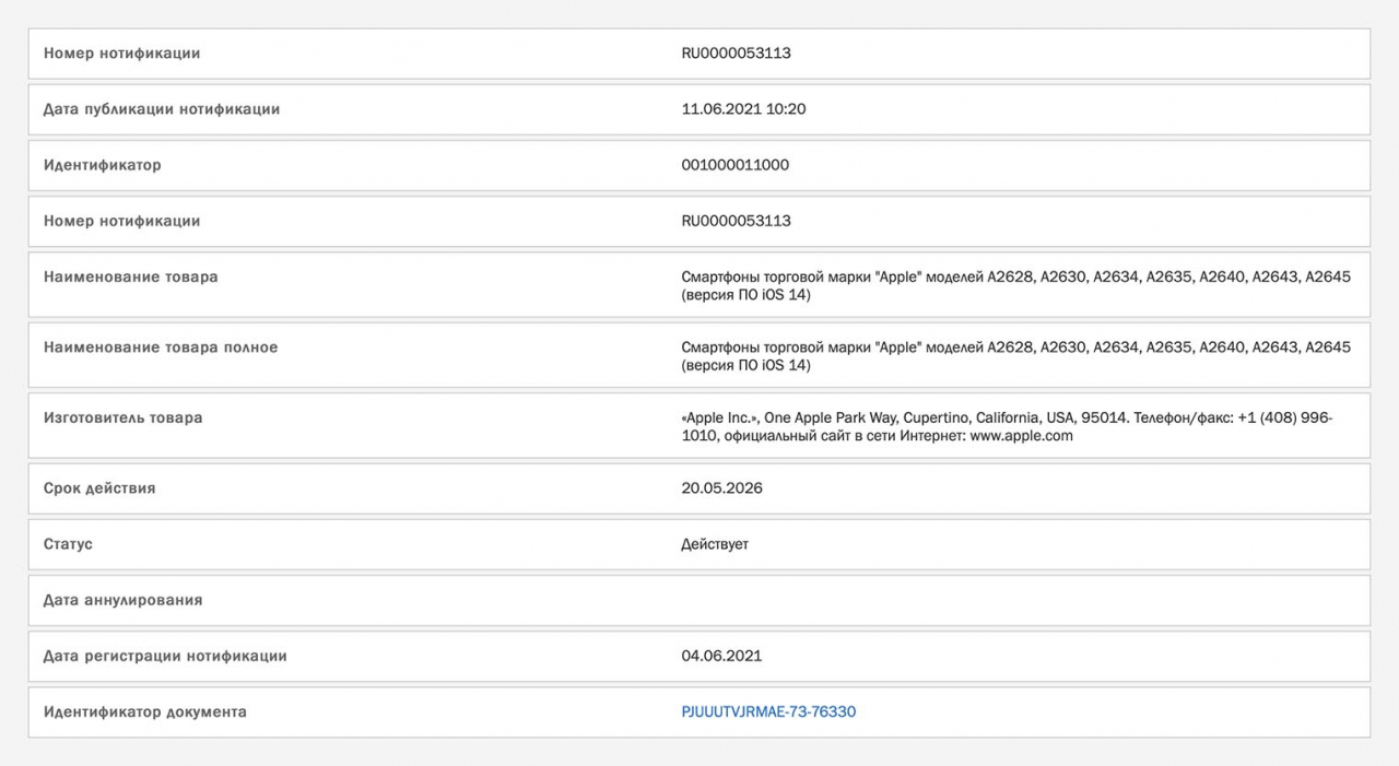 พบข้อมูล Apple ลงทะเบียนโมเดล iPhone รุ่นใหม่ (คาดว่าเป็น iPhone 13) ทั้งหมด 7 โมเดล ที่ฐานข้อมูล EEC อาจเป็นเลขสำหรับ iPhone 13 mini, iPhone 13, iPhone 13 Pro, iPhone 13 Pro Max