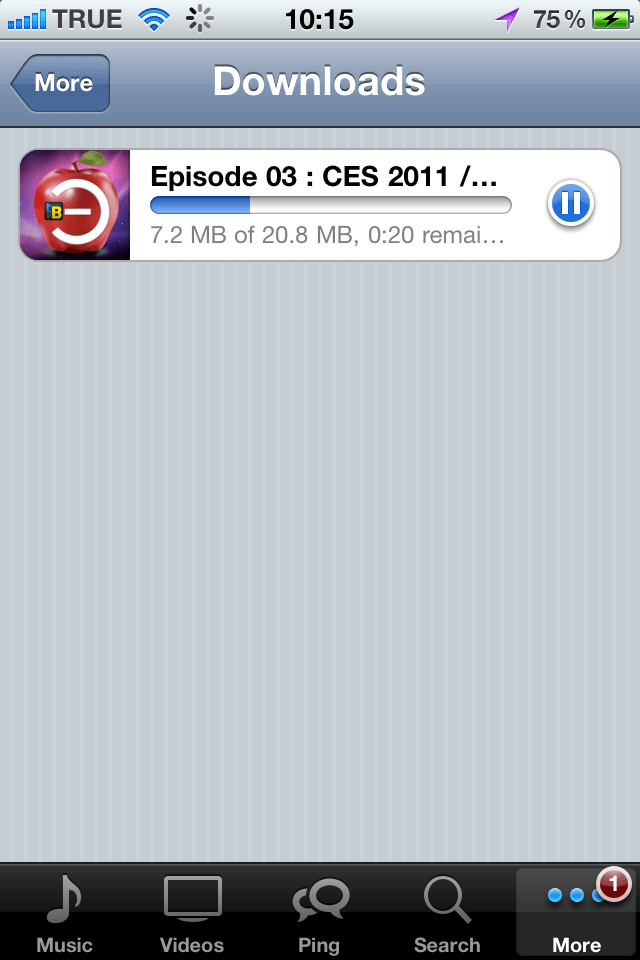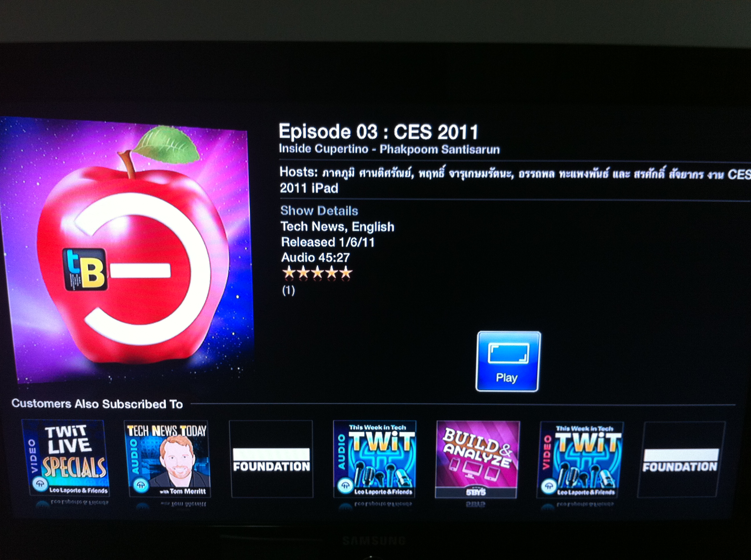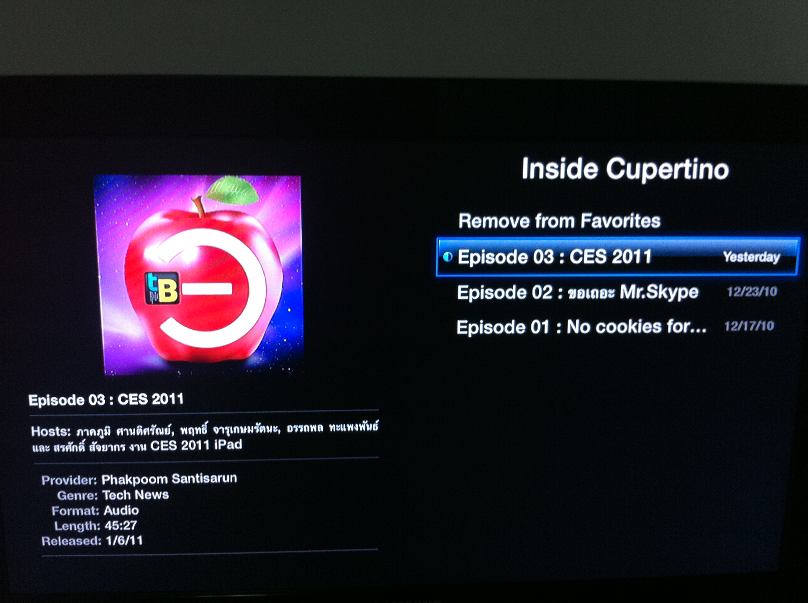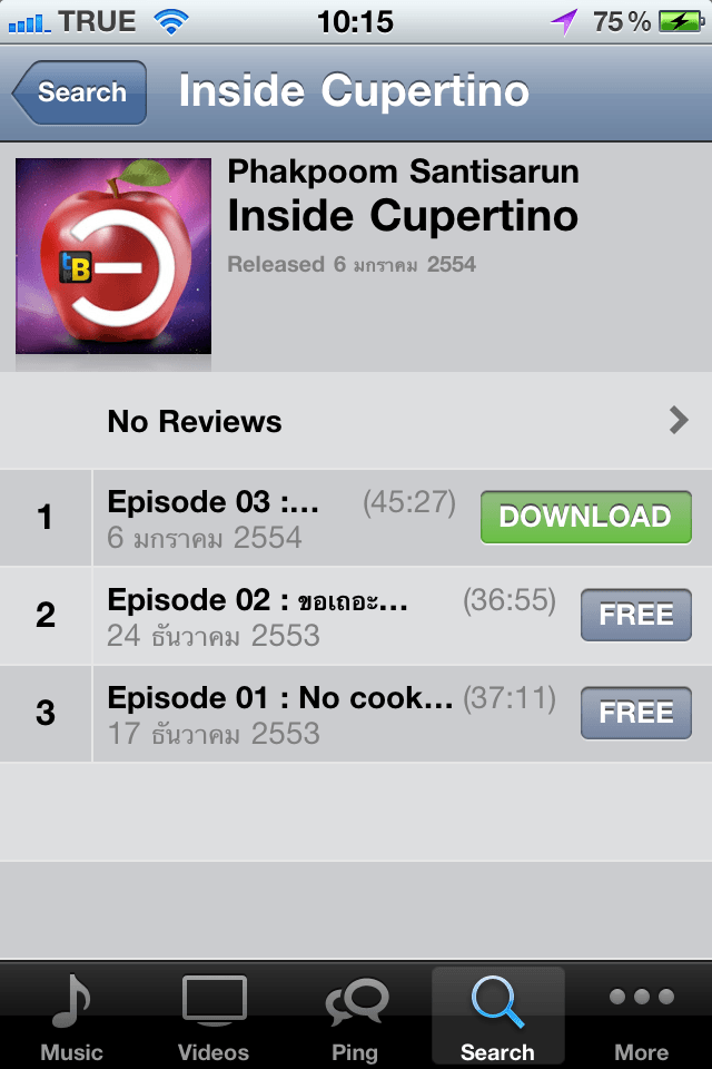 – กลับไปที่ iPod Apps เข้าไปแท็บ Podcast จะเจอสิ่งที่เราโหลดมา 🙂