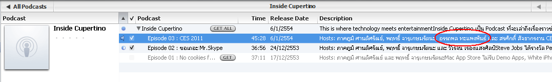 แล้วกด Subscribe Inside Cupertino มันจะไปปรากฏในหมวด Podcast ใน iTunes ของท่านทันที