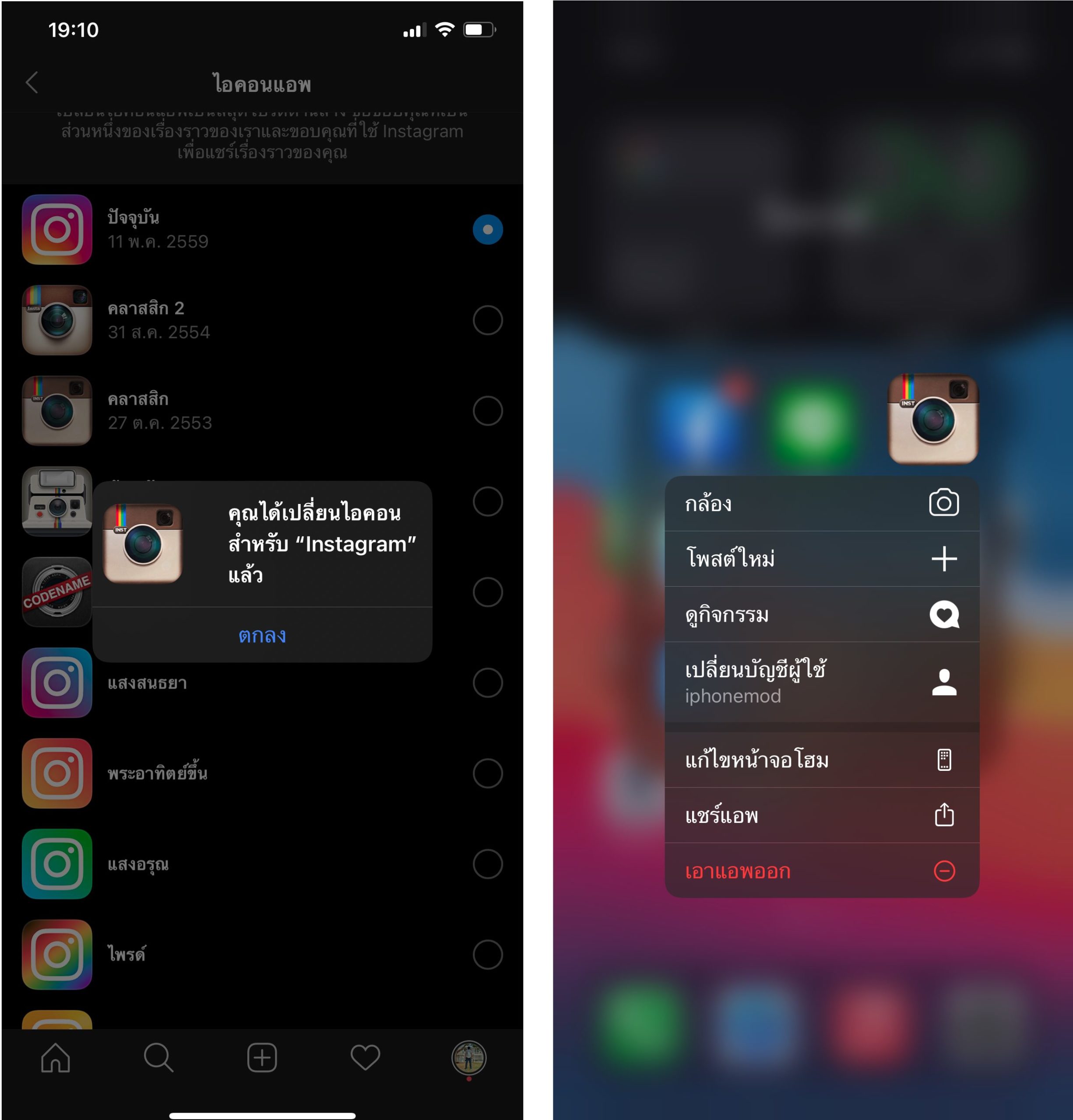 เปลี่ยนไอคอนแอป Instagram