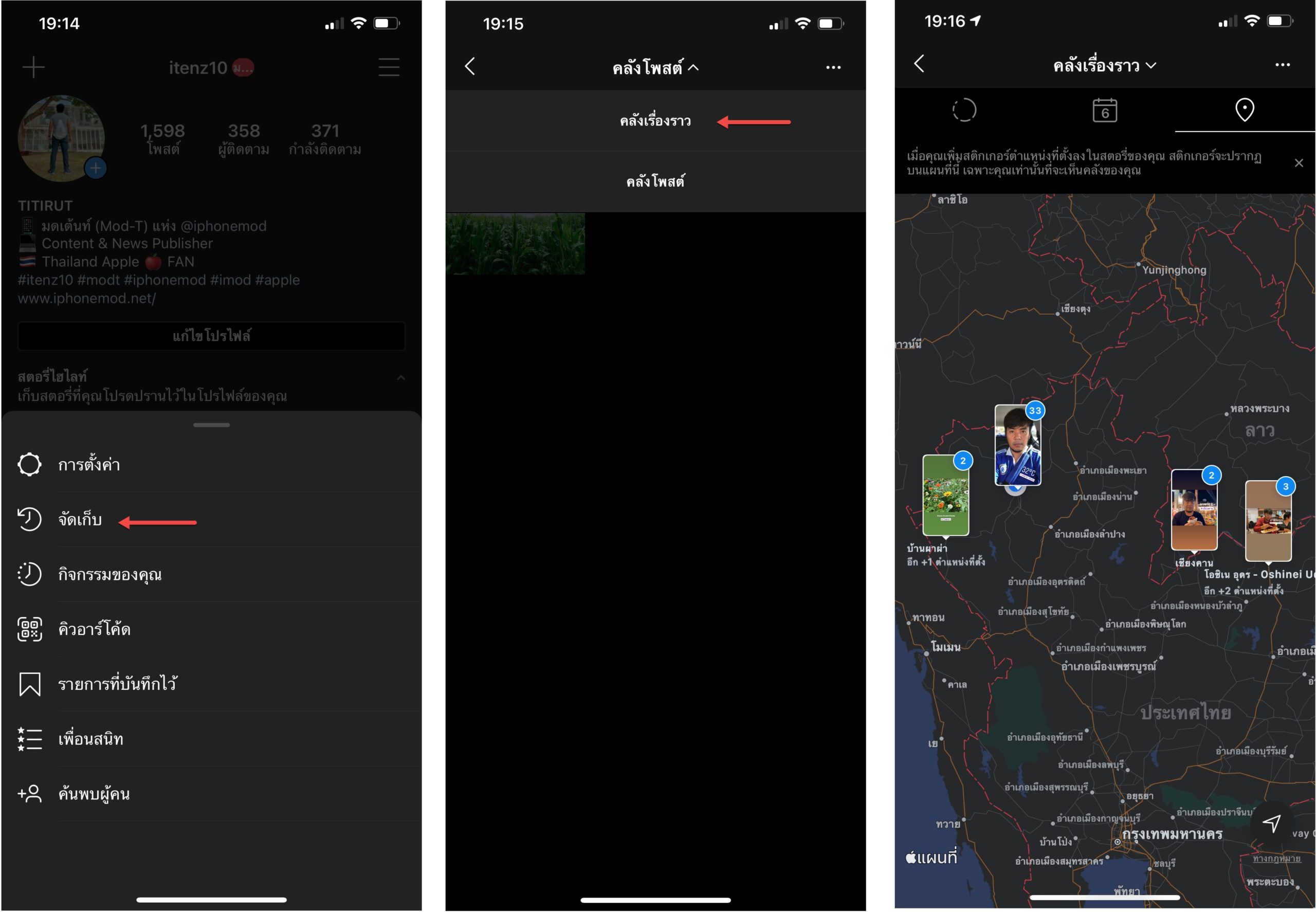 นอกจากนั้นผู้ใช้ยังสามารถดู Story แบบปฏิทินหรือแผนที่ได้ โดยไปที่ 3 ขีดด้านบน > การตั้งค่า > จัดเก็บ > เปลี่ยนเป็นคลังเรื่องราว > สามารถแตะที่ไอคอนปฏิทินหรือแผนที่เพื่อดู Story ได้ตามต้องการ