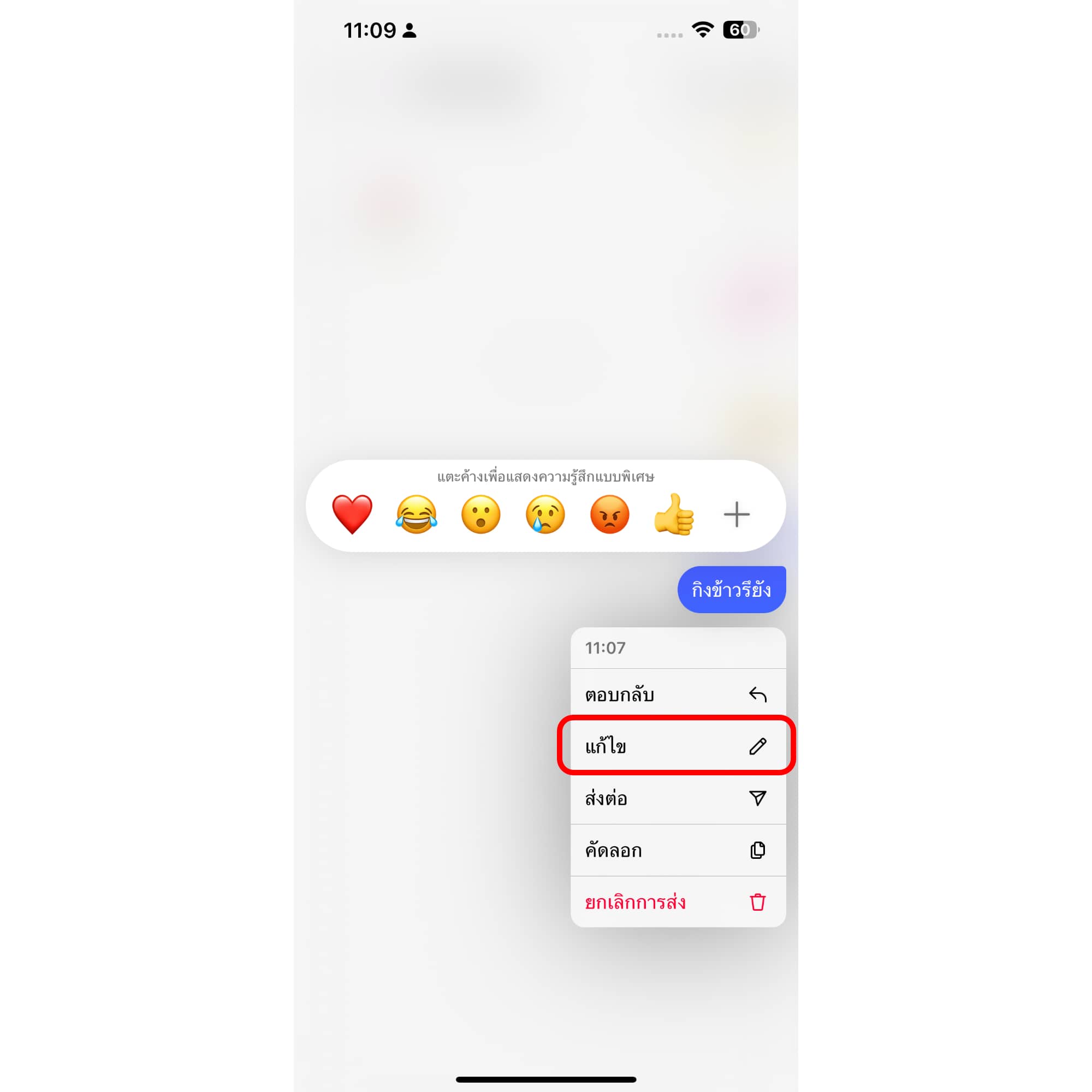 ให้เรากดค้างข้อความที่ต้องการแก้ไขได้เลย จากนั้นกด “แก้ไข”