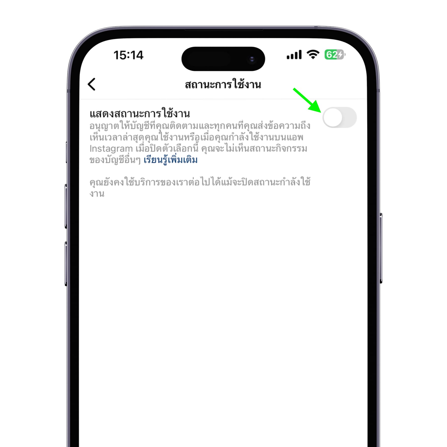 เลื่อนปิด “แสดงสถานะการใช้งาน”