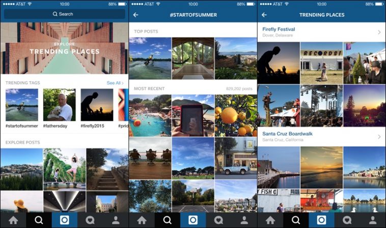 ในวันนี้ Instagram ได้เพิ่มความสามารถใหม่โดยค้นหาจากแท็กและสถานที่ในแบบเรียลไทม์ เช่น #bonnaroo หรือ #fathersday โดยแบ่งออกเป็นสองหมวดคือ Explore และ Search (บางความสามารถยังใช้ได้แค่เฉพาะอเมริกา)