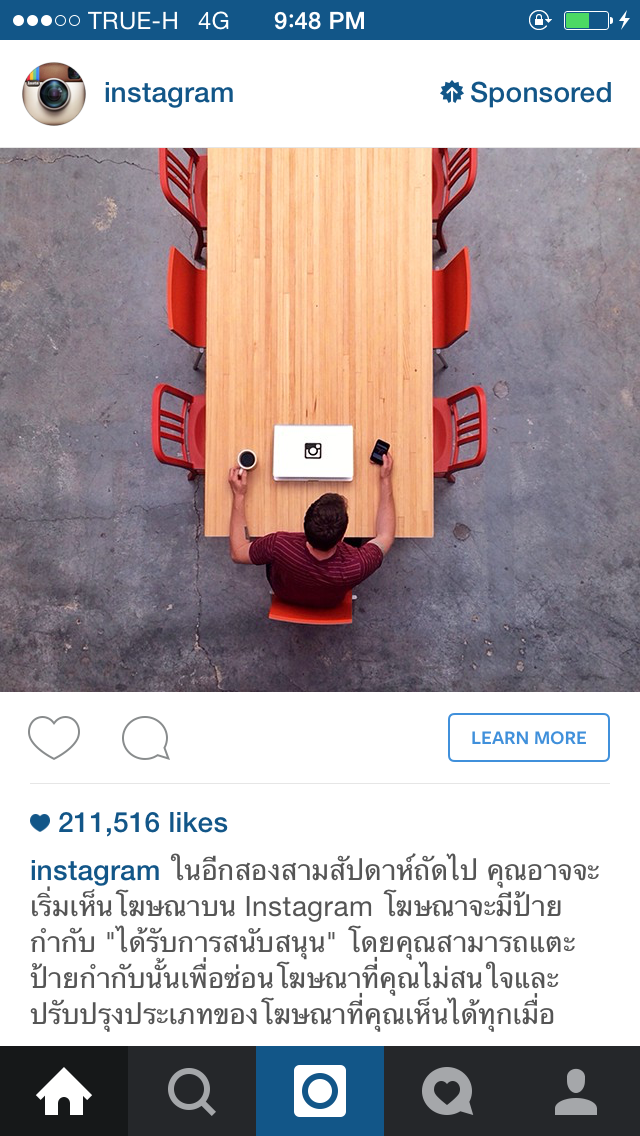 รูปภาพต่อไปนี้เป็นตัวอย่างที่ผู้เขียนบังเอิญเลื่อนๆ ไปเจอใน Instagram จึงมาแจ้งกันให้ทราบกัน ดดย Instagram จะรองรับระบบโฆษณาหรือสปอนเซอร์แบบเดียวกับ Facebook โดยจะเริ่มในอีกสองสัปดาห์ครับ