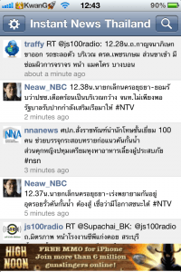 เมื่อเปิดแอพเข้ามาหน้าแรกจะเจอกับข่าวสารต่างๆที่อัพเดตผ่านทางทวิตเตอร์