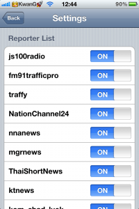 นอกจากนั้นเราสามารถเพิ่มหรือลดชื่อผู้รายงานข่าว หรือคนที่เราต้องการจะติดตามได้โดยไปที่ setting ตรงรูปเฟืองด้านซ้ายมือบน