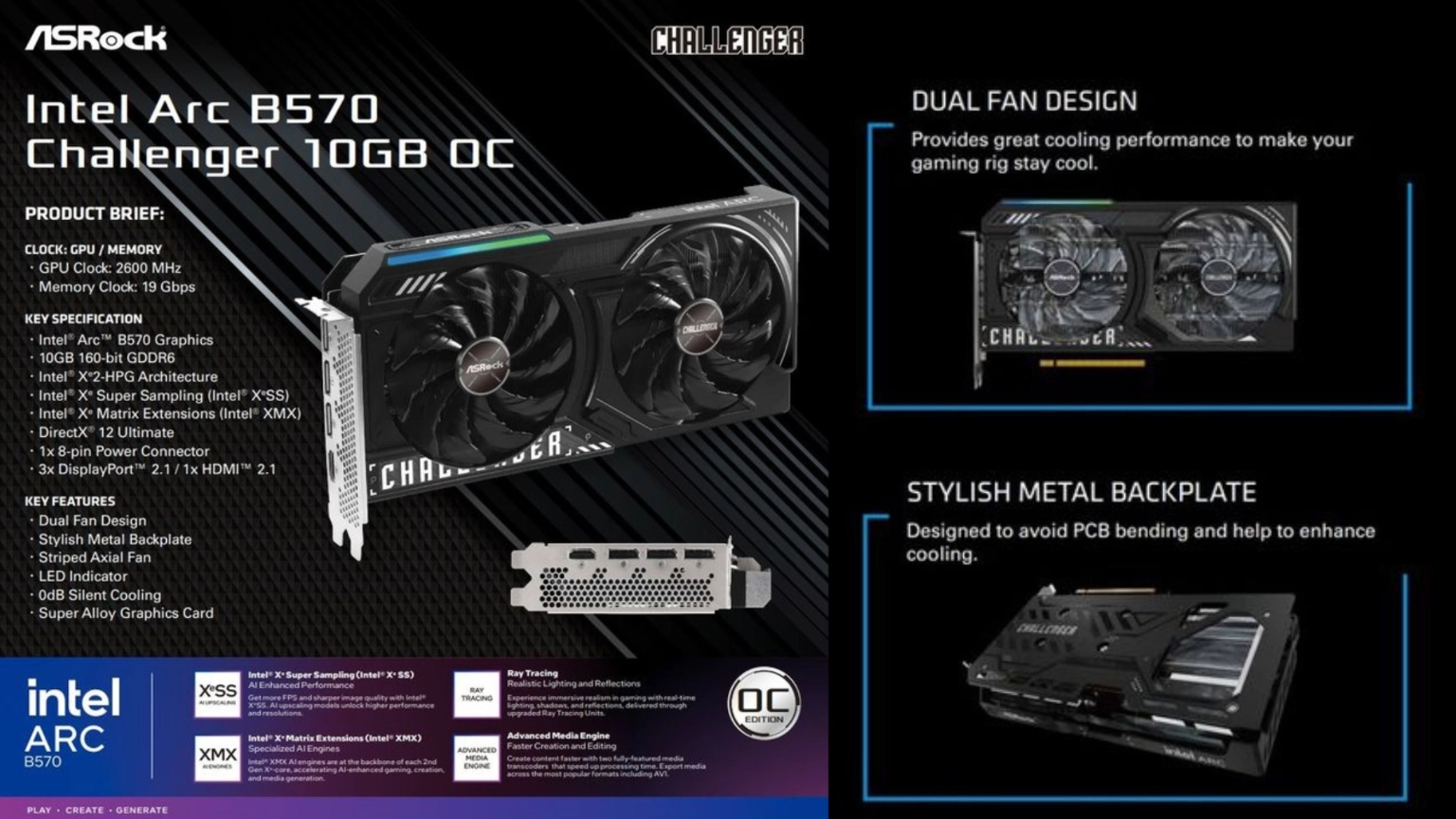 ซึ่งมีรายละเอียดสำหรับ ASRock Arc B570 Challenger OC GPU แบบพัดลมคู่ ชิปใหม่นี้อาจมี 18 Xe2 cores และ VRAM GDDR6 10GB บน160-bit memory