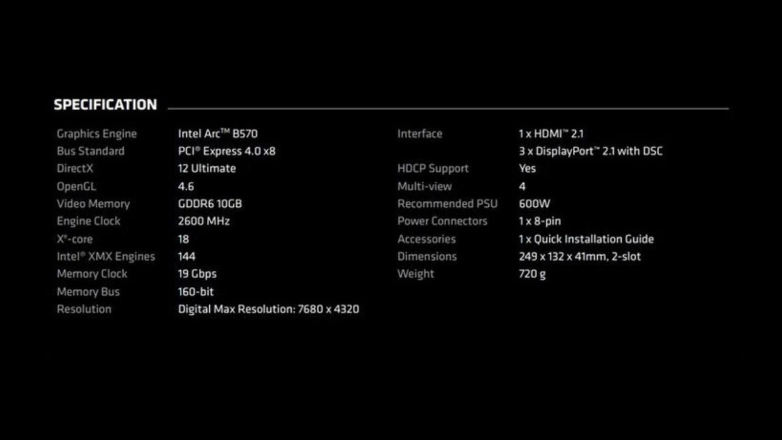 ชิป Arc B570 ของ Intel อาจมาพร้อมกับตัวเชื่อมต่อพลังงาน 8-pin PCIe power connector และ GPU 2.6GHz พร้อมกับรองรับ HDMI 2.1 และ DisplayPort 2.1
