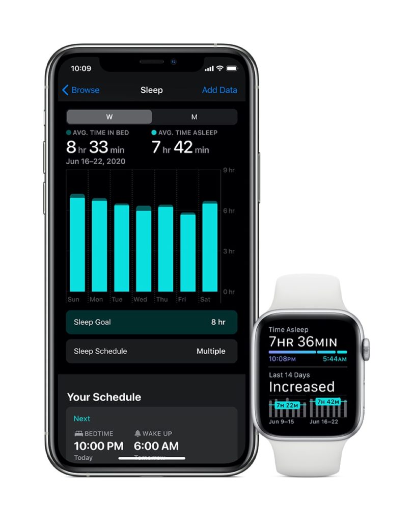 แอป Sleep ใน watchOS 7 เป็นแอปสำหรับติดตามการนอนหลับของผู้ใช้ โดยจะเริ่มตั้งแต่การเตรียมความพร้อมสำหรับการนอนแต่ละวัน ติดตามระหว่างนอนหลับโดยผู้ใช้จะต้องสวมใส่ Apple Watch นอน และรายงานสรุปผล