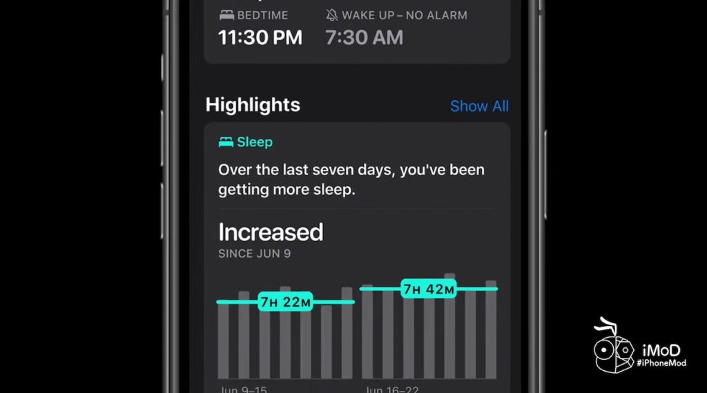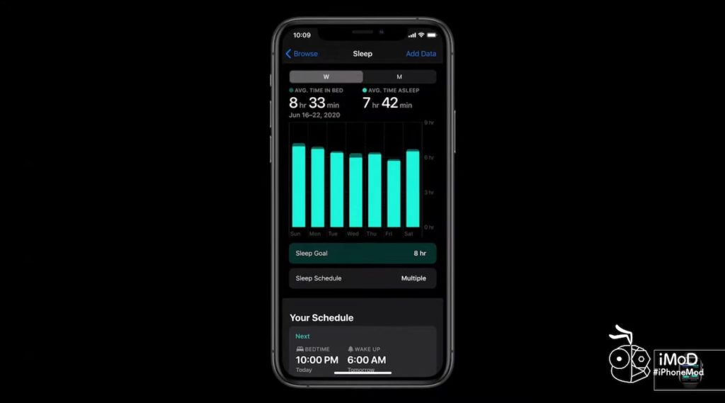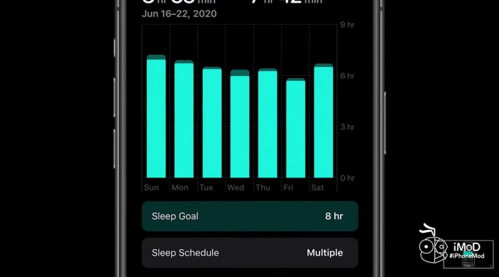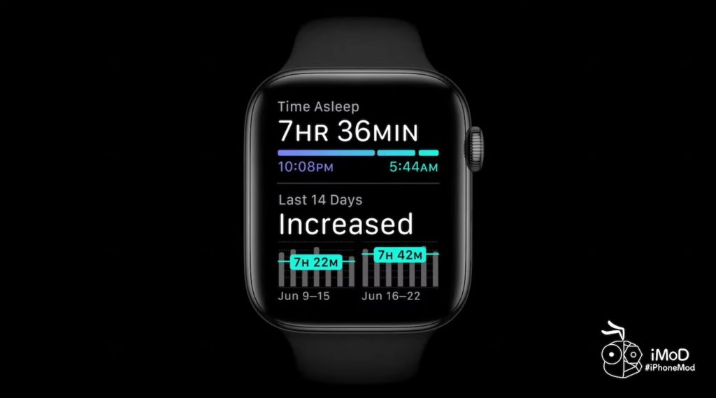 ผู้ใช้สามารถตั้งเวลาเข้าตอน เวลาตื่น และ Wind Down สำหรับการเตรียมตัวก่อนเข้านอนได้ (สามารถตั้งค่าได้ที่แอป Watch บน iPhone)