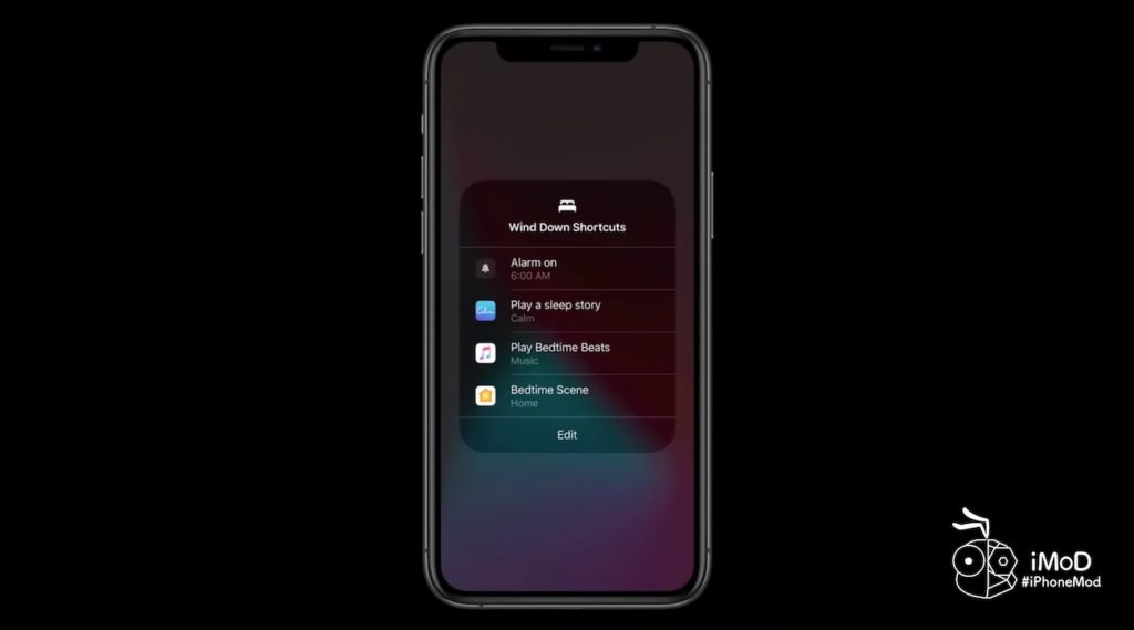 เมื่อถึงเวลา Wind Down หรือเวลาการก่อนเข้านอน จะมีการแจ้งเตือนบน iPhone ให้ทราบ เพื่อให้ผู้ใช้เตรียมตนเอง ผ่อนคลายความเครียด โดยอาจจะเลือกคำสั่งลัดเปิดใช้งานแอปประเภทผ่อนคลาย ฝึกสมาธิ ฟังเพลงก่อนนอน