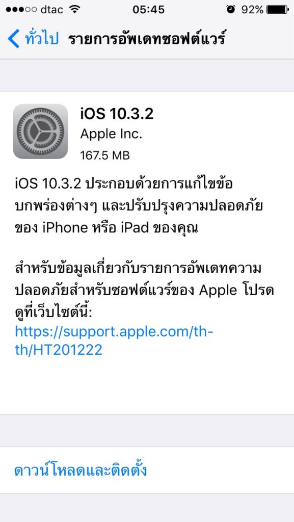 iOS 10.3.2 มาพร้อม Build Number หมายเลข 14F89 | 14F90 ซึ่งการอัปเดตครั้งนี้จัดเป็นการอัปเดตขนาดเล็ก ผู้ใช้ทั่วไปสามารถอัปเดต iOS ได้หลายวิธีดังนี้