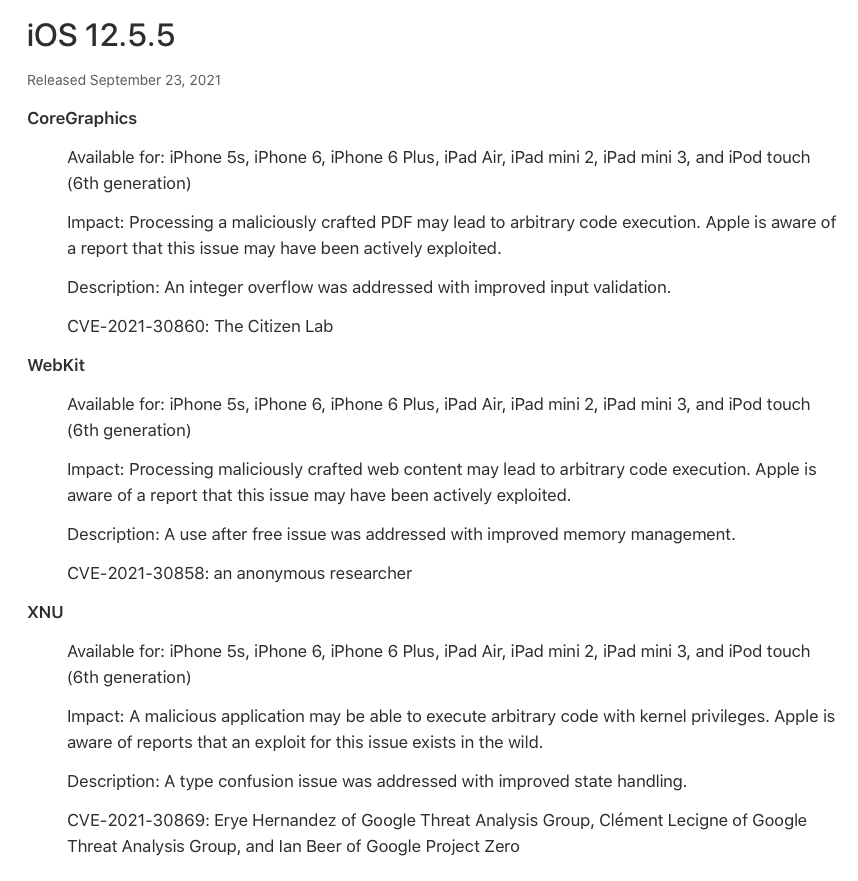 iOS 12.5.5 มาพร้อมการอัปเดตความปลอดภัย CoreGraphics, WebKit, XNU