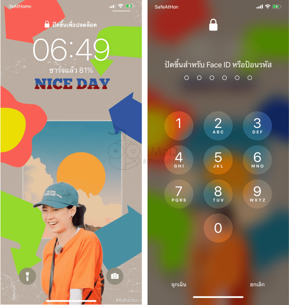หากเราใส่หน้ากากหรือมีอะไรมาบังหน้าเรา ระบบก็จะแจ้งว่า “ปัดขึ้นเเพื่อปลดล็อค”