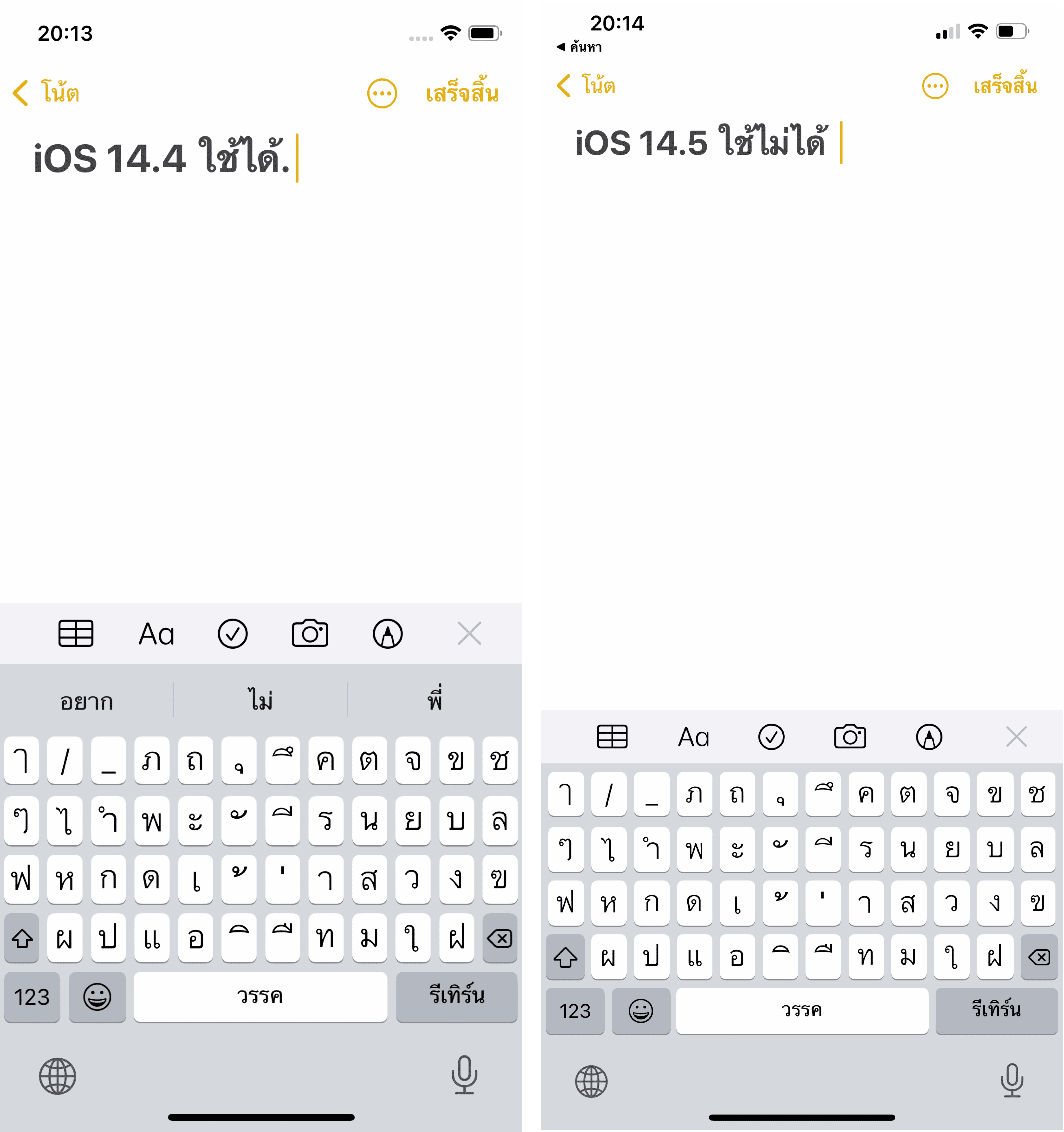 iOS 14.5, iOS 14.5.1 ใช้การแตะเว้นวรรคสองครั้งแล้วเพิ่มจุด . หลังข้อความภาษาไทย ไม่ได้
