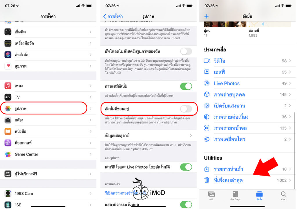 iOS 14 สามารถเลือกปิดการแสดงอัลบั้มที่ซ่อนรูปภาพ (Hidden) ได้