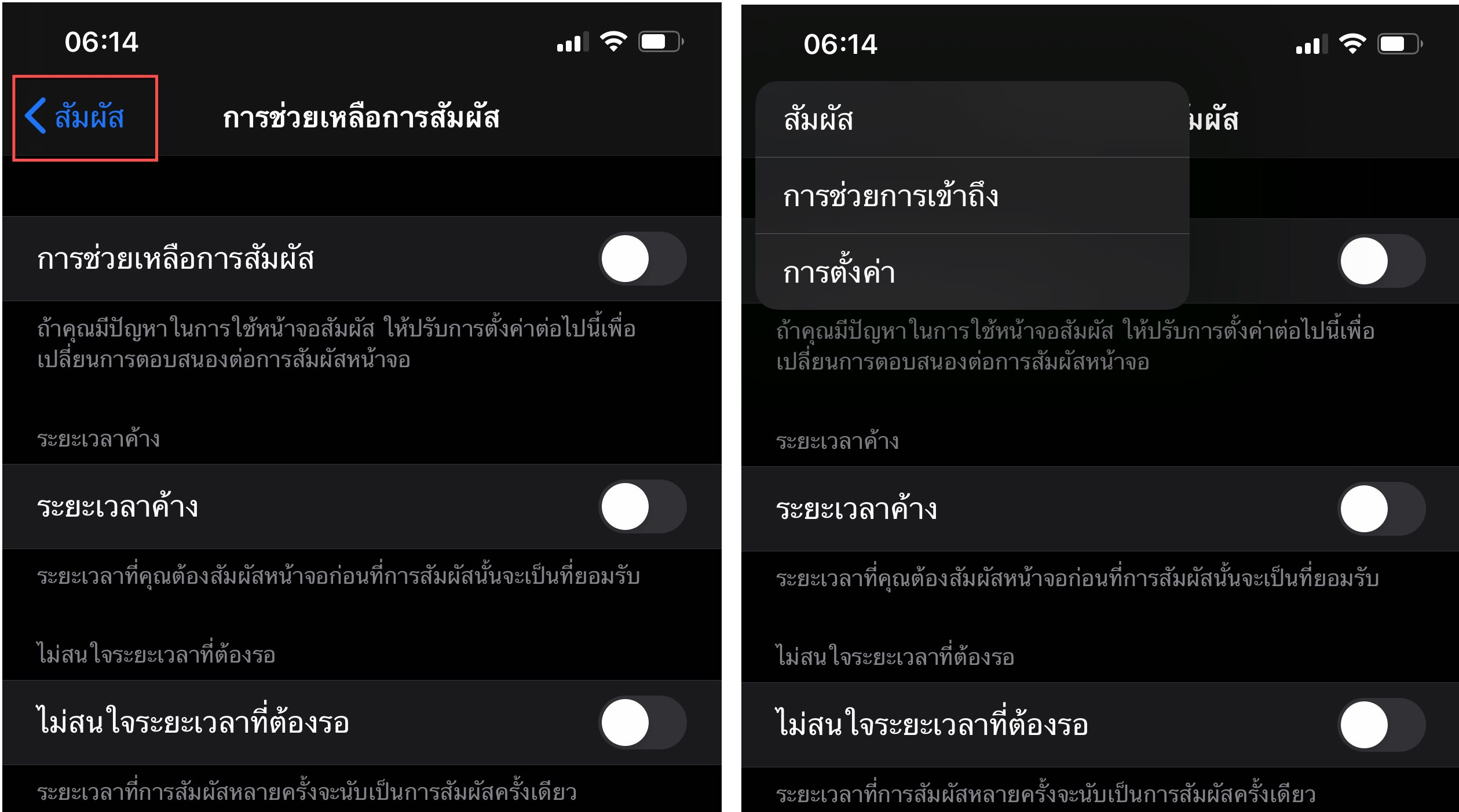 ใน iOS 14 เราสามารถแตะปุ่มย้อนกลับ (Back) ค้างไว้ เพื่อเลือกหน้าที่จะกลับไปได้ ช่วยให้สามารถกลับออกไปที่หน้าแรกของการตั้งค่าโดยไม่ต้องแตะหลายครั้ง
